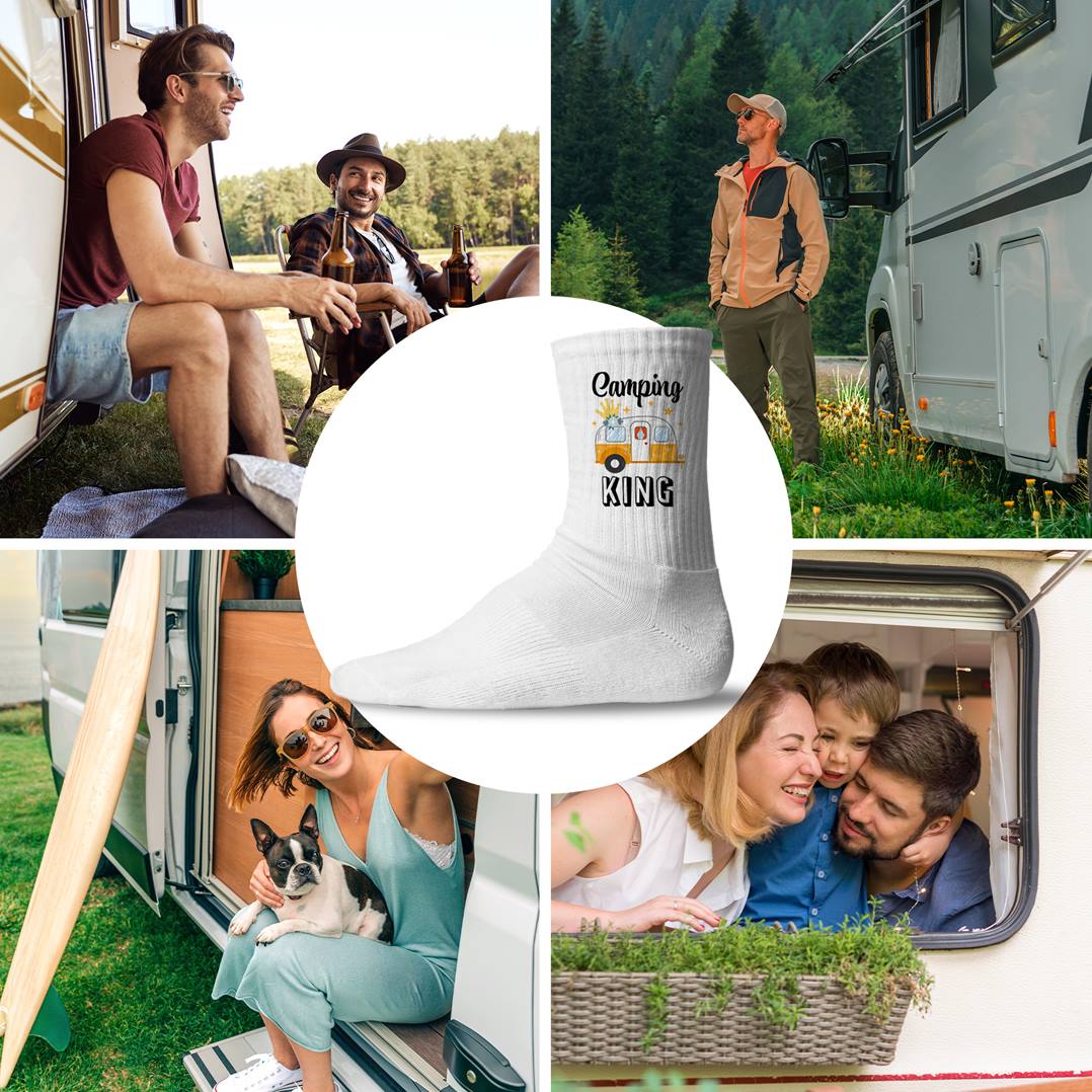 Diese Tennissocken bringen Abenteuerlust in deinen Alltag – mit einem detailreichen „Camping King“-Motiv samt Camper-Van, sauber und langlebig per Sublimationsdruck aufgebracht. Bequem, atmungsaktiv und robust: perfekt für Urlaub, Freizeit und Roadtrip.