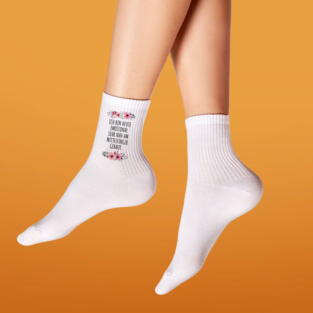 Socken - Ich bin heute emotional sehr nah am Mittelfinger gebaut. - blumig