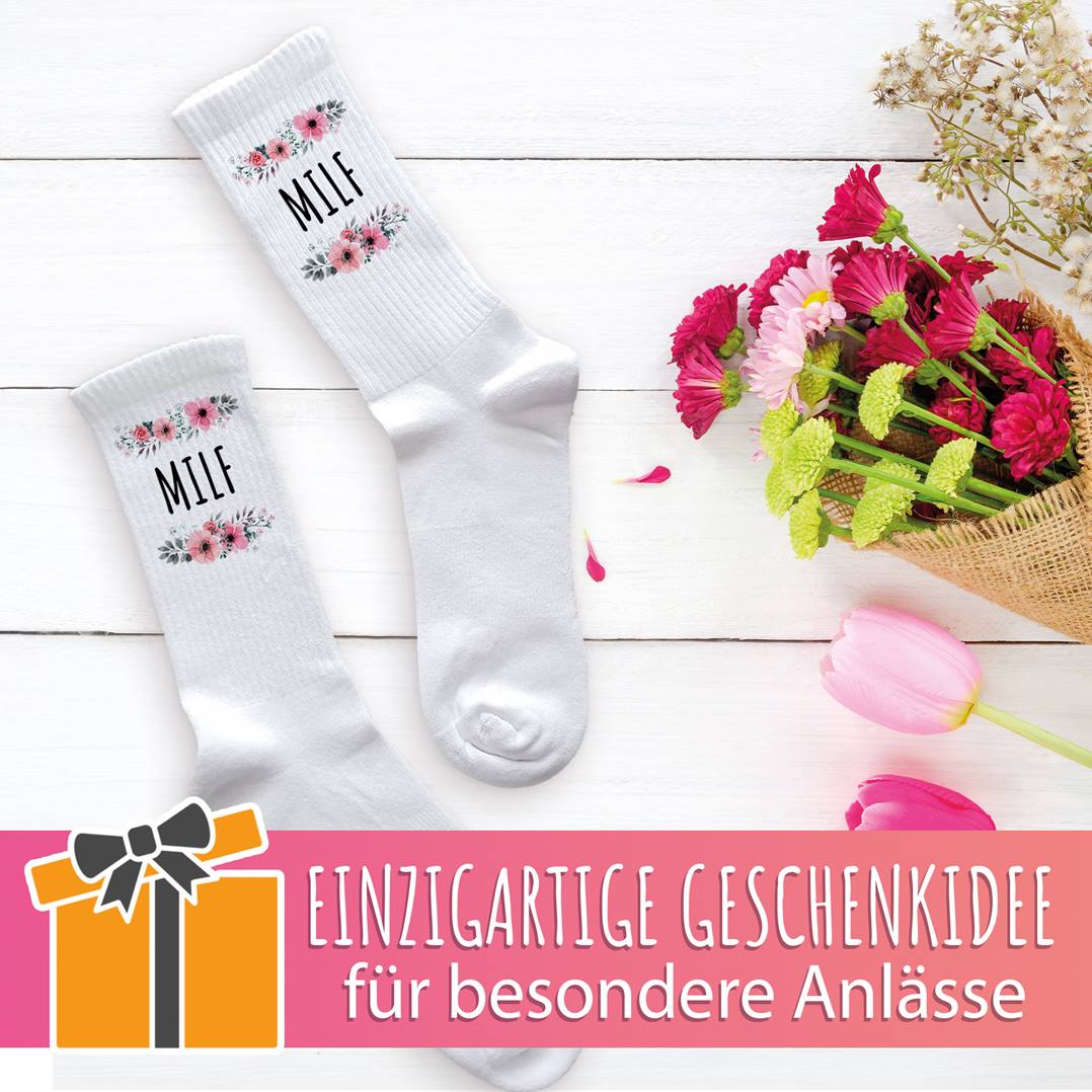 Diese frechen Tennissocken feiern die Milf in dir – mit floralem Flair und einer ordentlichen Portion Selbstbewusstsein! Der hochwertige Sublimationsdruck bringt das blumige "Milf" 🌸 -Motiv in kräftigen Farben auf den Schaft – langlebig, detailreich und absolut bürotauglich (na ja… fast). Bequem, atmungsaktiv und robust: Diese Socken machen jede Aktivität ein bisschen wilder.