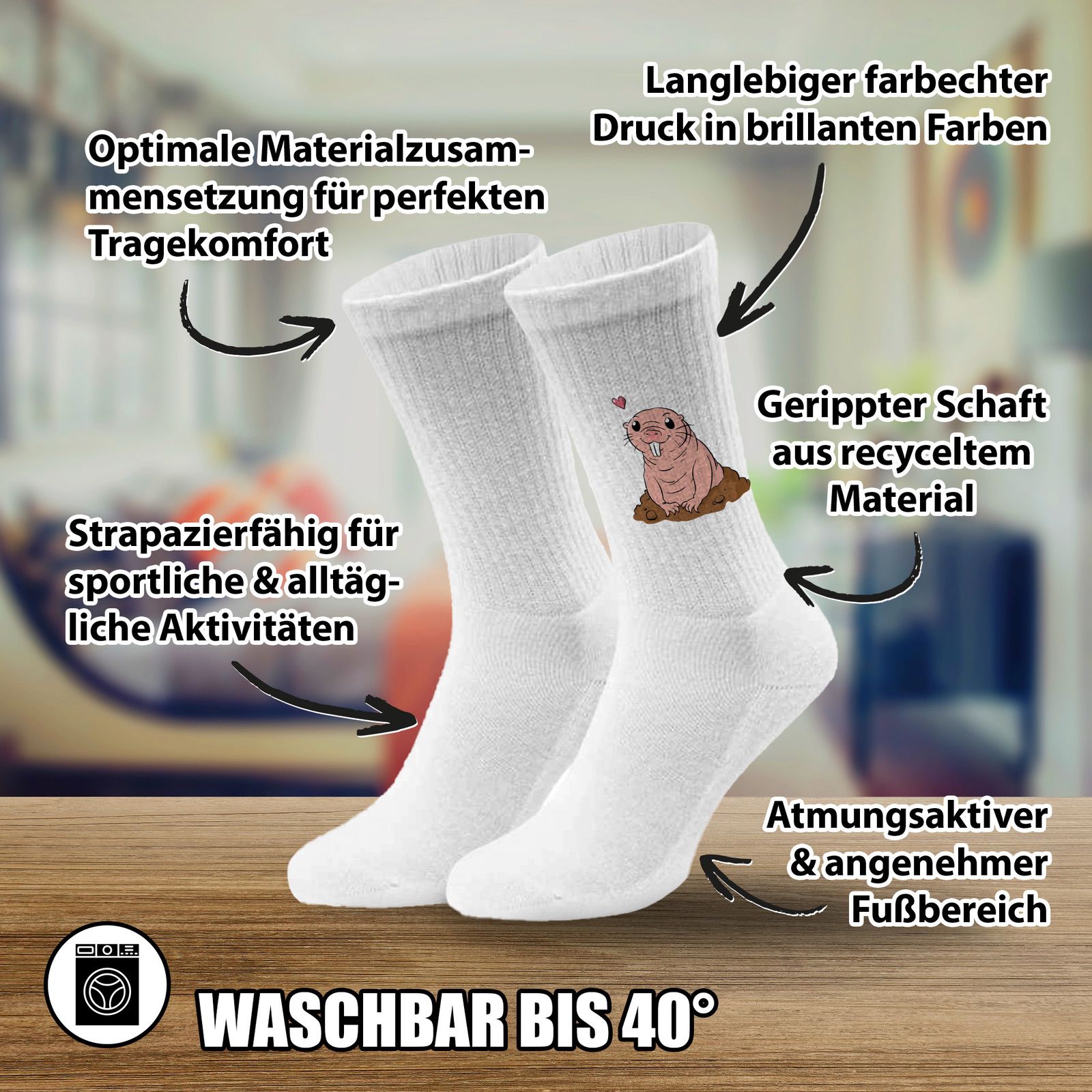 Diese lustigen Tennissocken bringen Humor in deinen Alltag – mit einem detailreichen Nacktmull‑Motiv, sauber und langlebig per Sublimationsdruck aufgebracht. Bequem, atmungsaktiv und robust: perfekt für Sport und Freizeit.