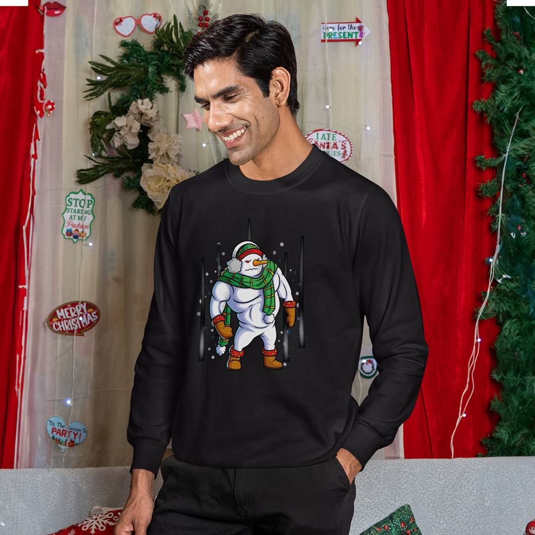 Hochwertiger Pullover mit Bodybuilder Schneemann Motiv ⛄
