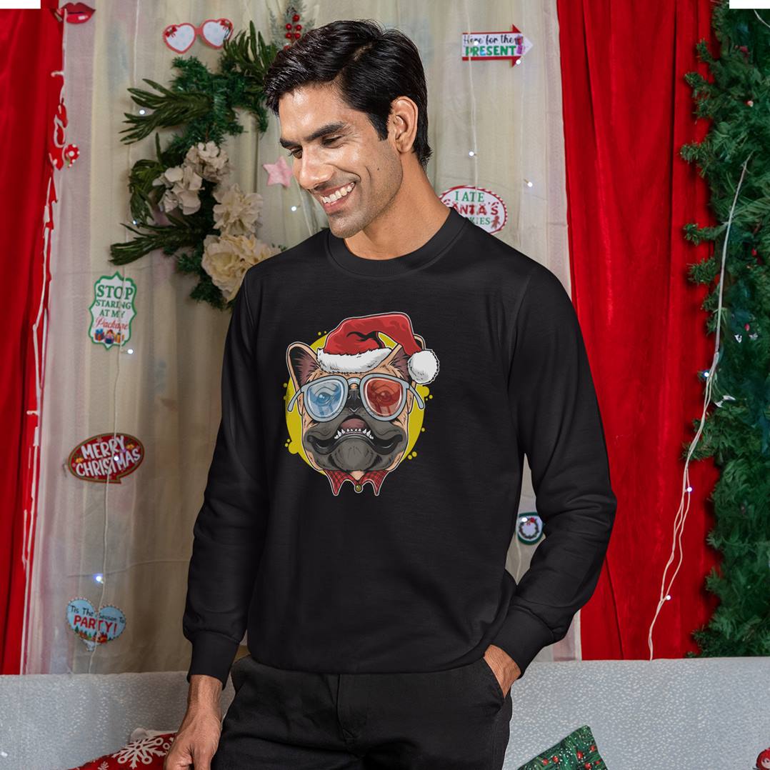 Cooler Weihnachtspullover mit Hundemotiv & Weihnachtsmütze