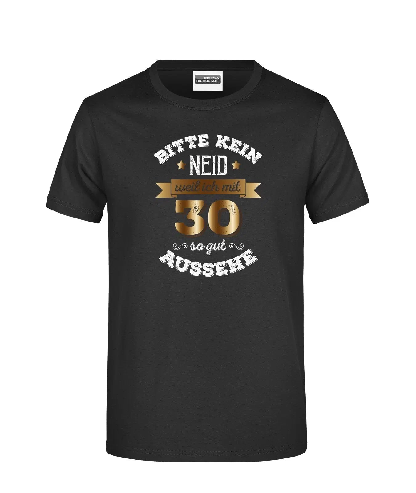 T-Shirt zum Geburtstag mit Spruch: Bitte kein Neid, weil ich mit 30 so gut aussehe 🥳