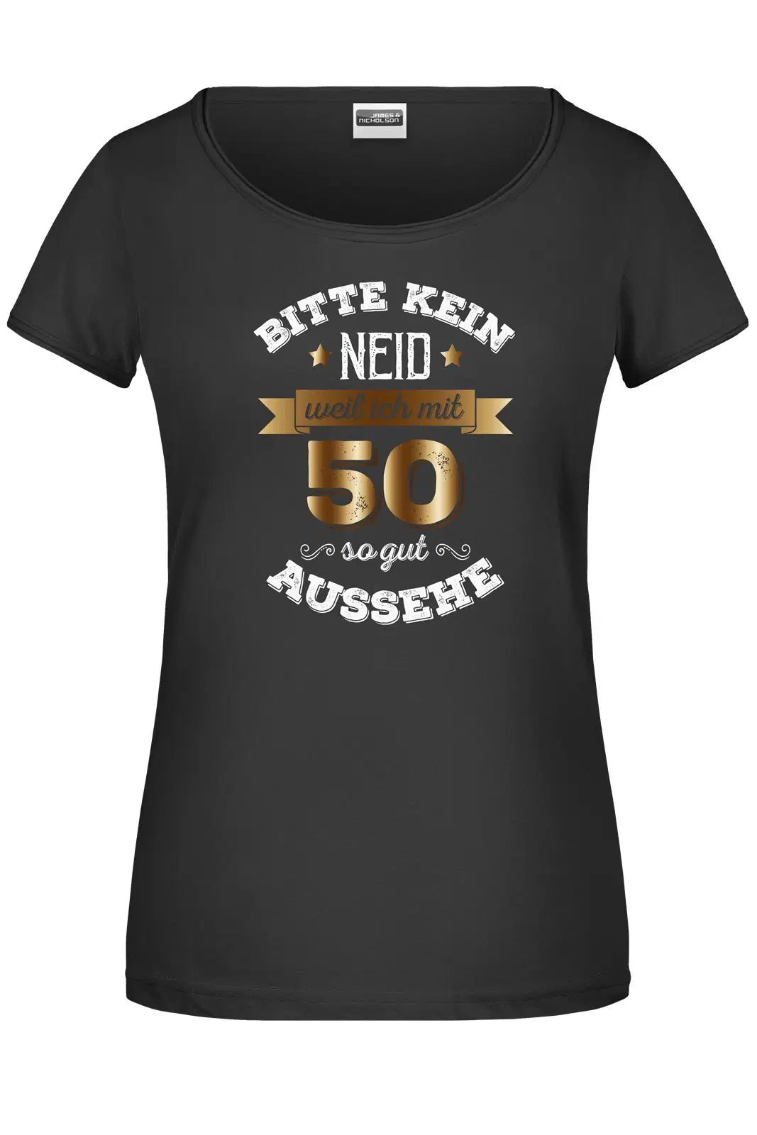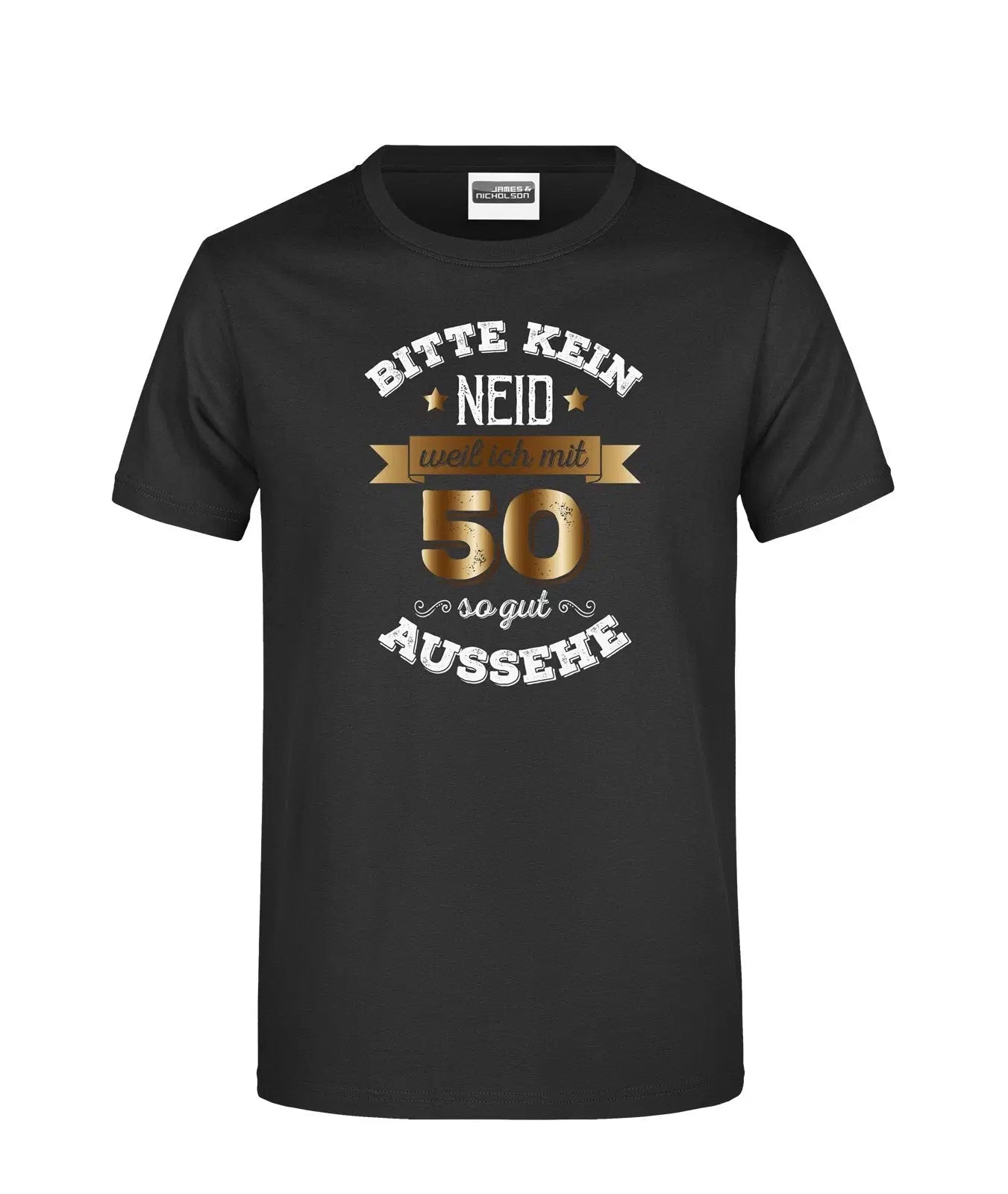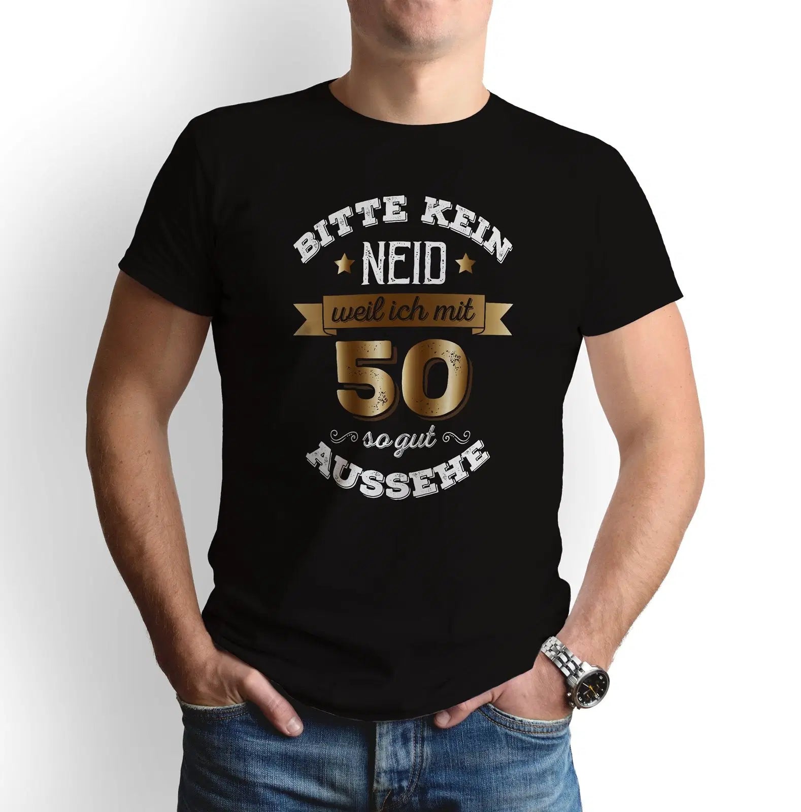 T-Shirt zum Geburtstag mit Spruch: Bitte kein Neid, weil ich mit 50 so gut aussehe 🥳