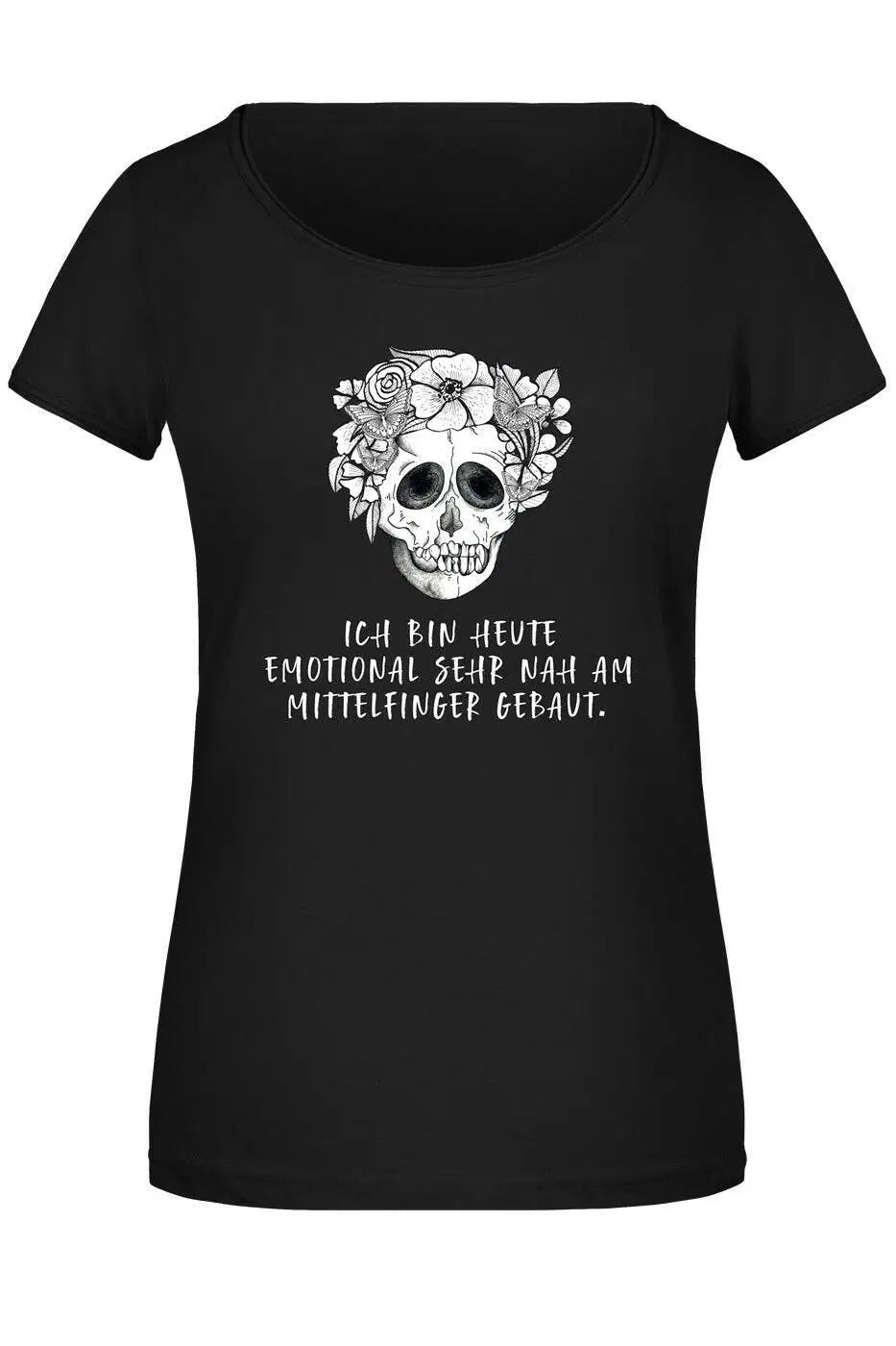 T-Shirt Damen - Ich bin heute emotional sehr nah am Mittelfinger gebaut. - Totenkopf