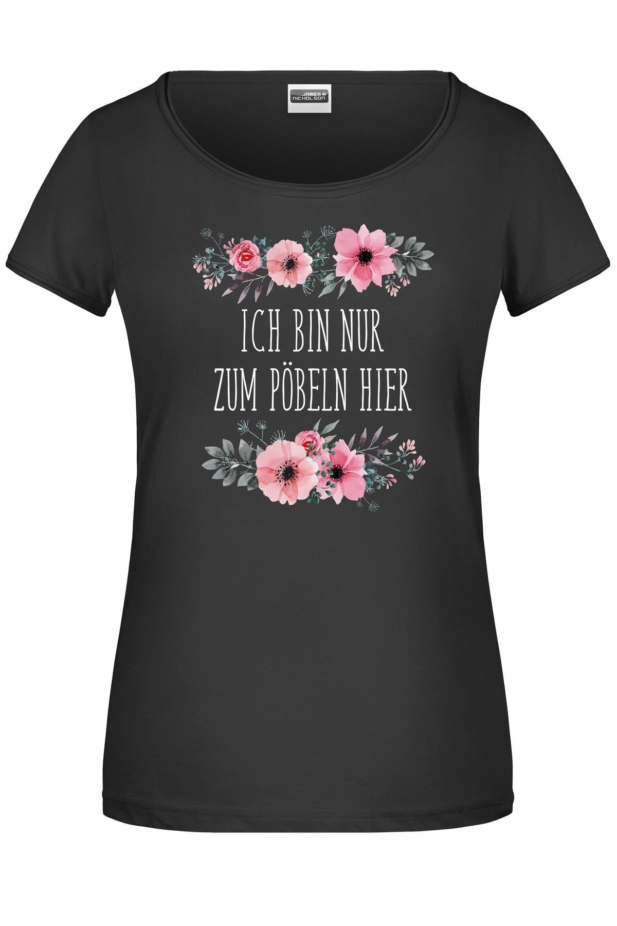 Blümchen T-Shirt 🌸 mit Spruch: Ich bin nur zum Pöbeln hier
