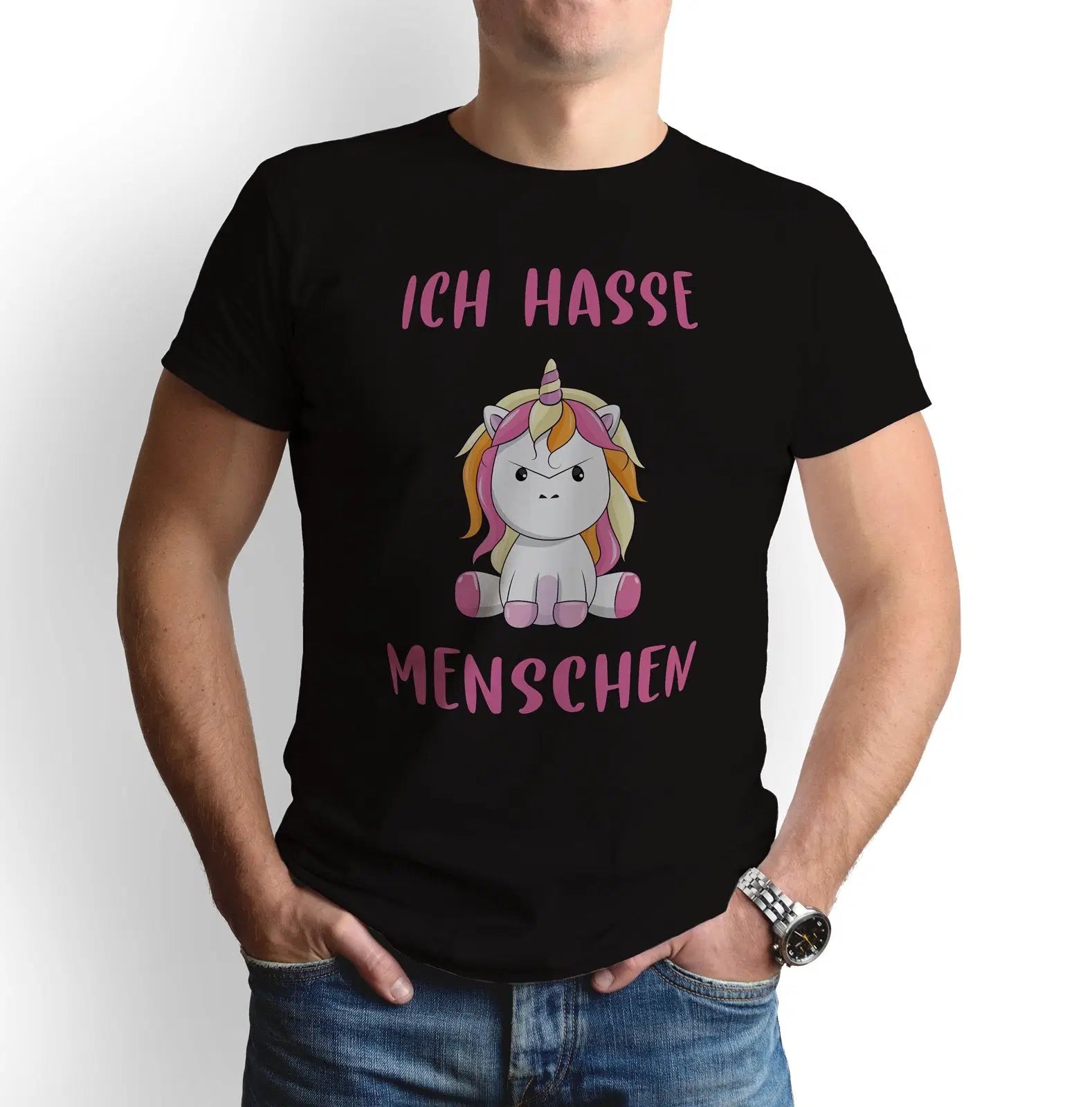 Einhorn T-Shirt mit Spruch: Ich hasse Menschen 🦄 mit Einhorn - Zornhorn