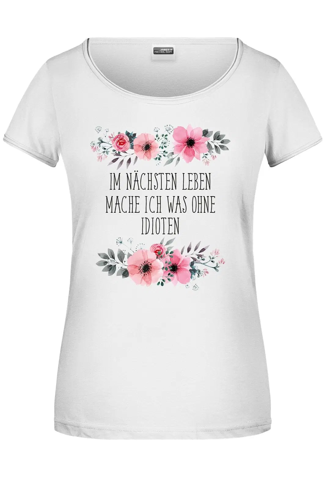 Blümchen T-Shirt 🌸 mit Spruch: Im nächsten Leben mache ich was ohne Idioten