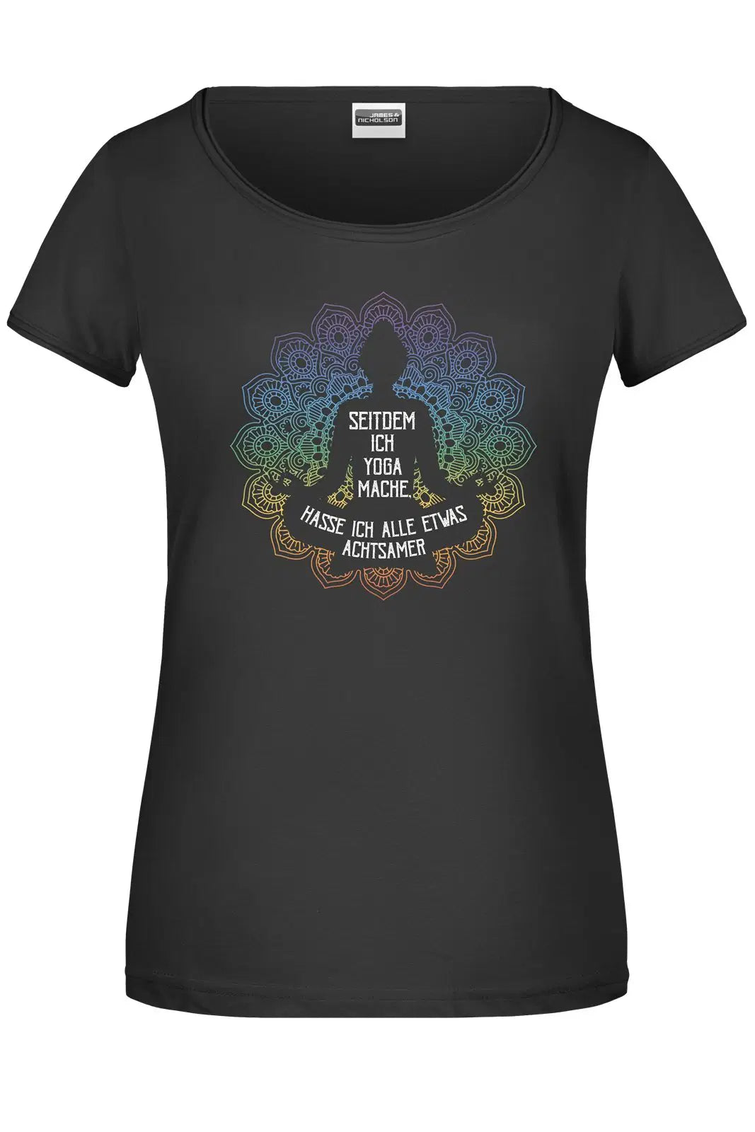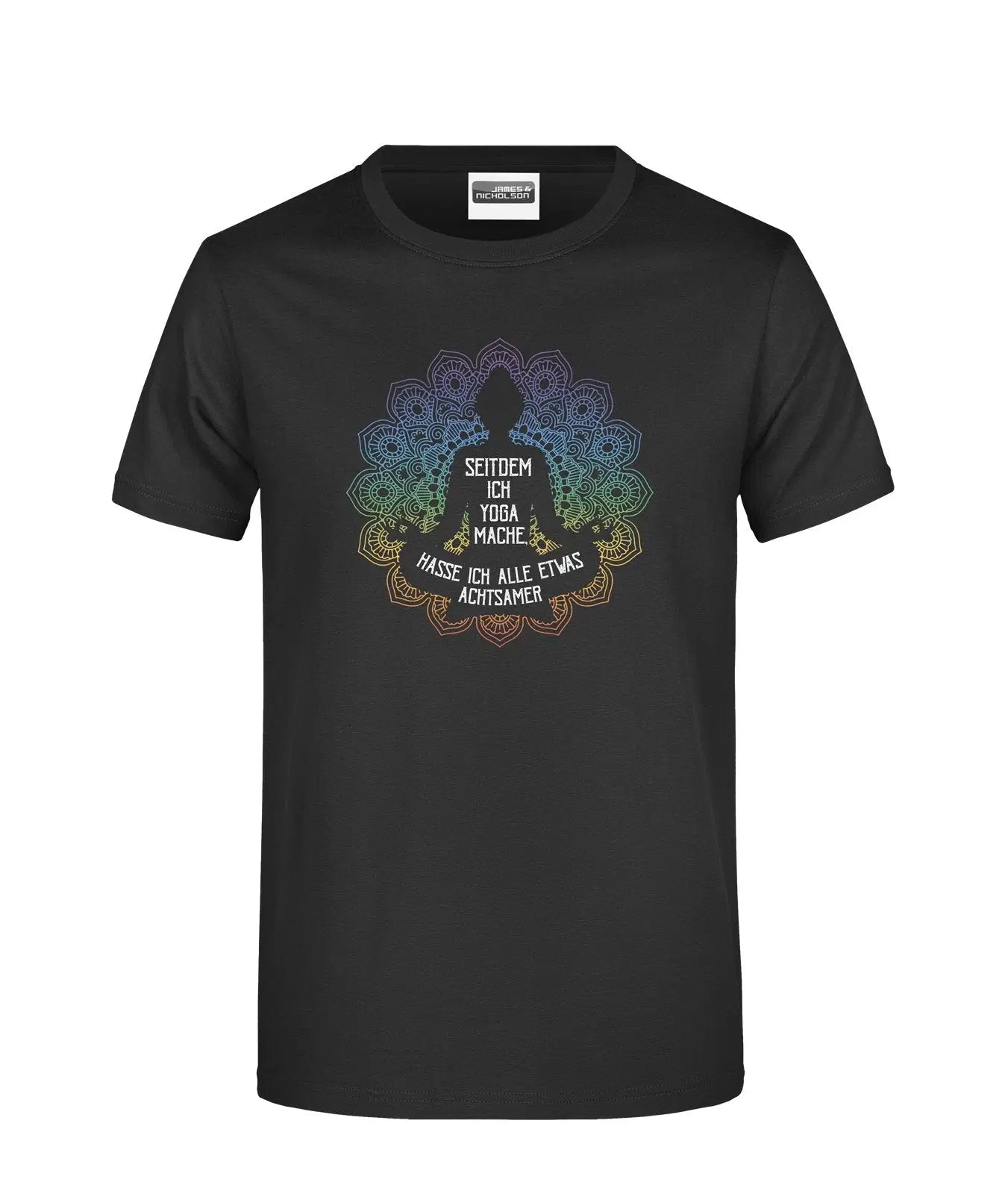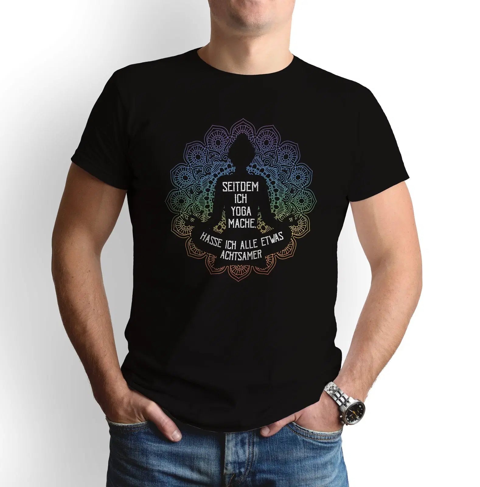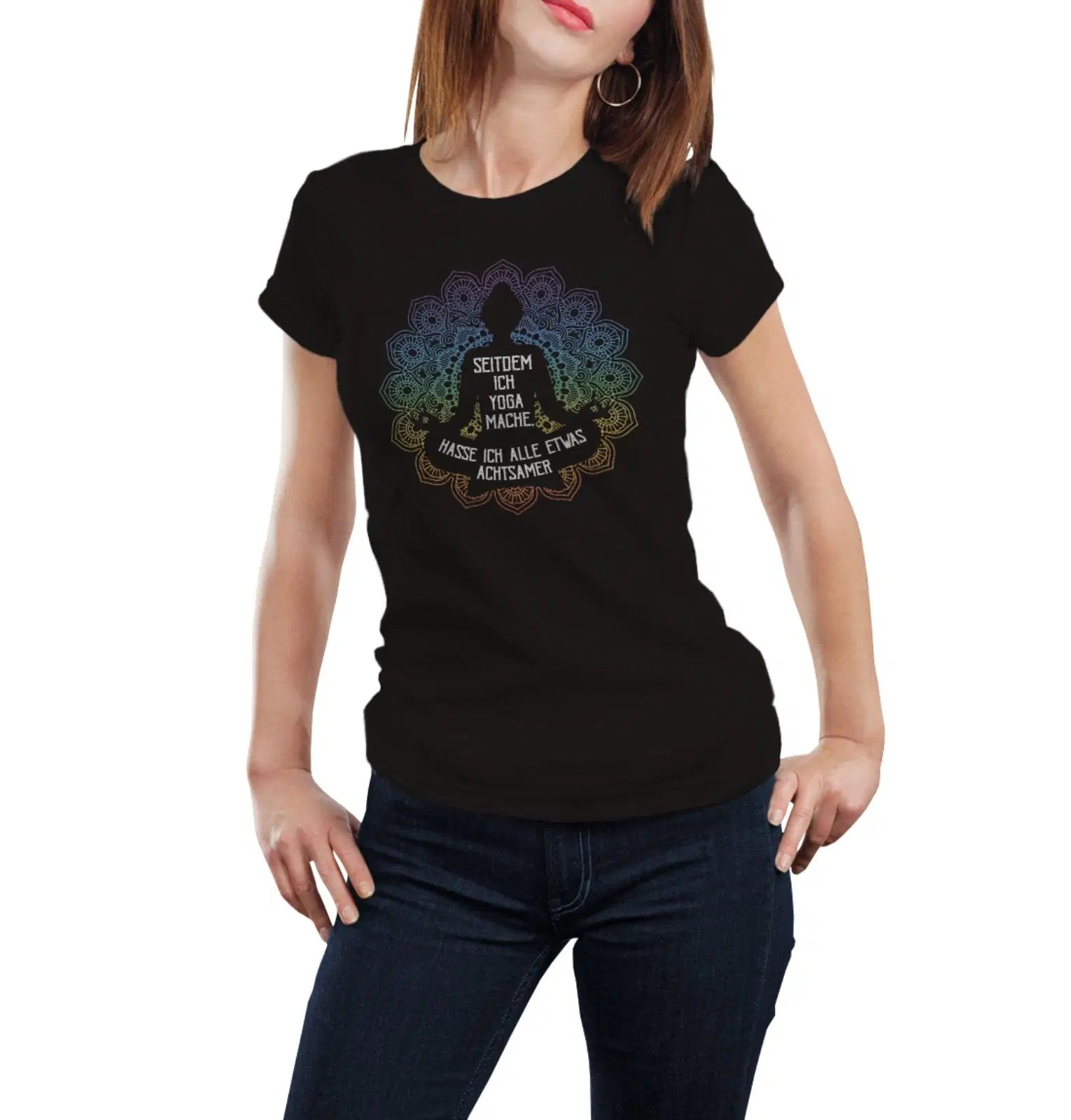 T-Shirt mit Spruch: Seitdem ich Yoga mache, hasse ich alle etwas achtsamer