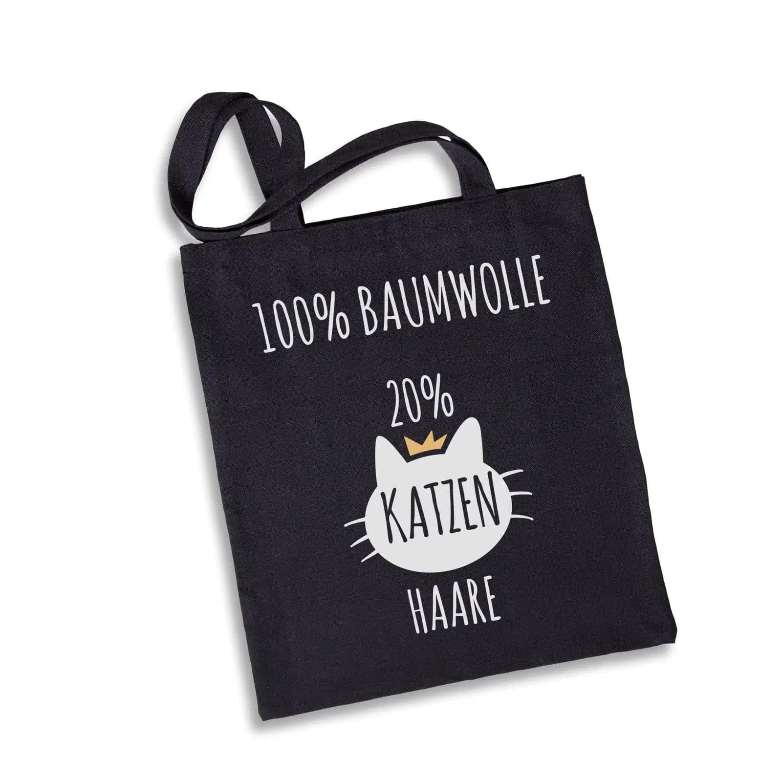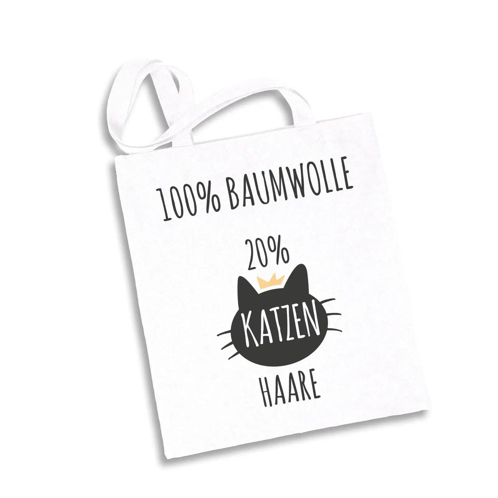 Baumwolltasche (Beutel) mit langen Henkeln mit Spruch: 100% Baumwolle 🐱 20%Katzenhaare