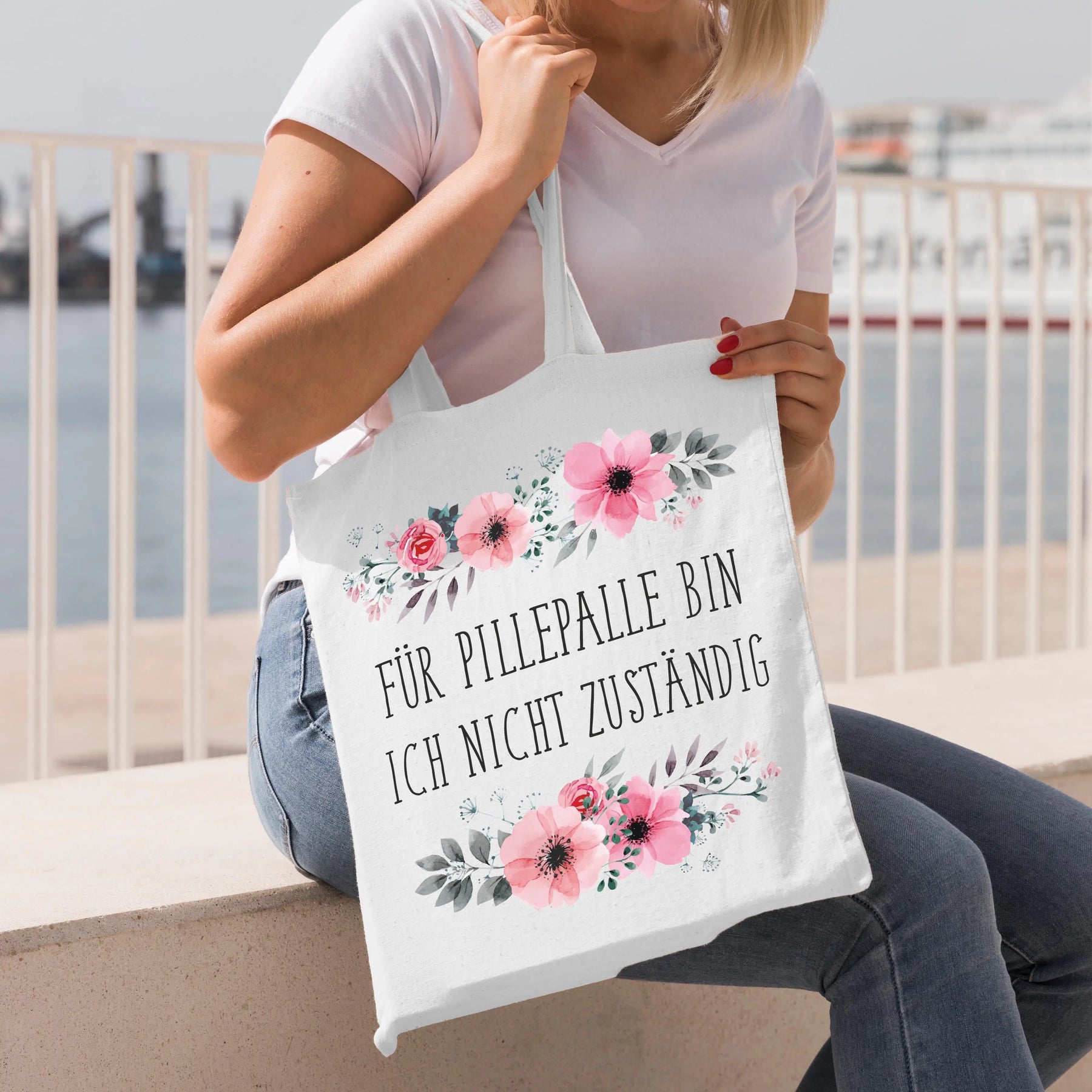 Baumwolltasche - Für Pillepalle bin ich nicht zuständig - blumig