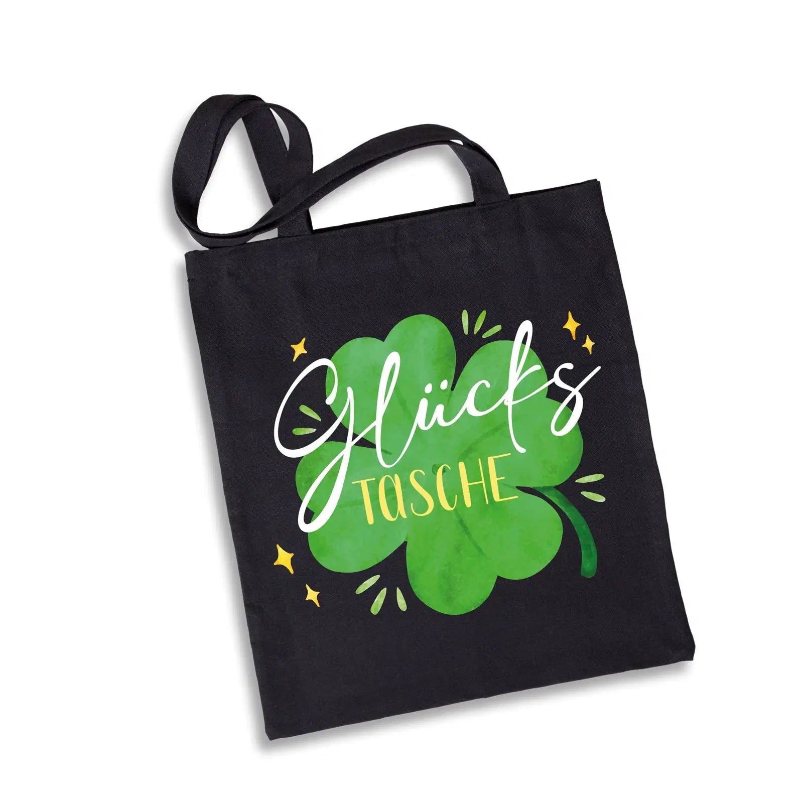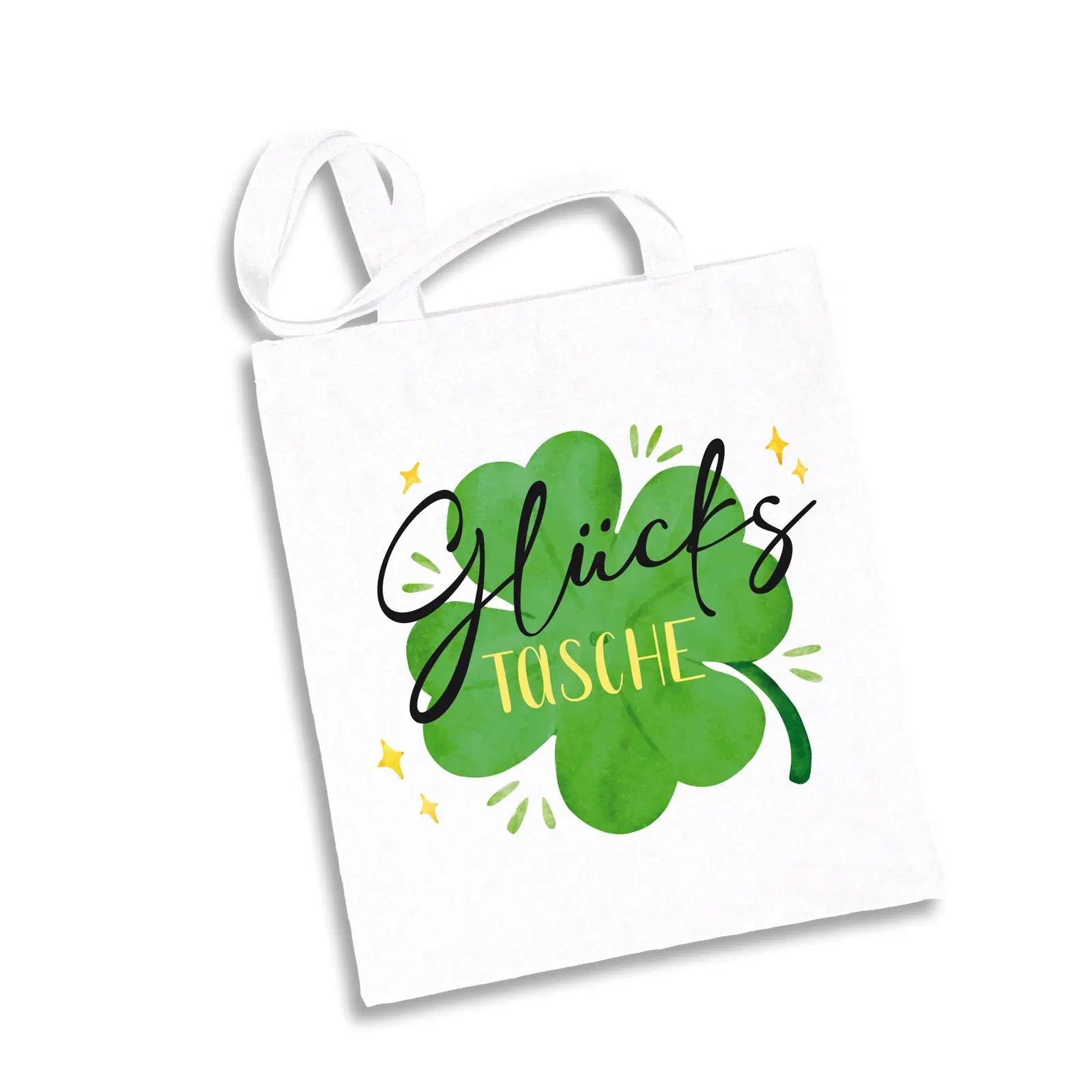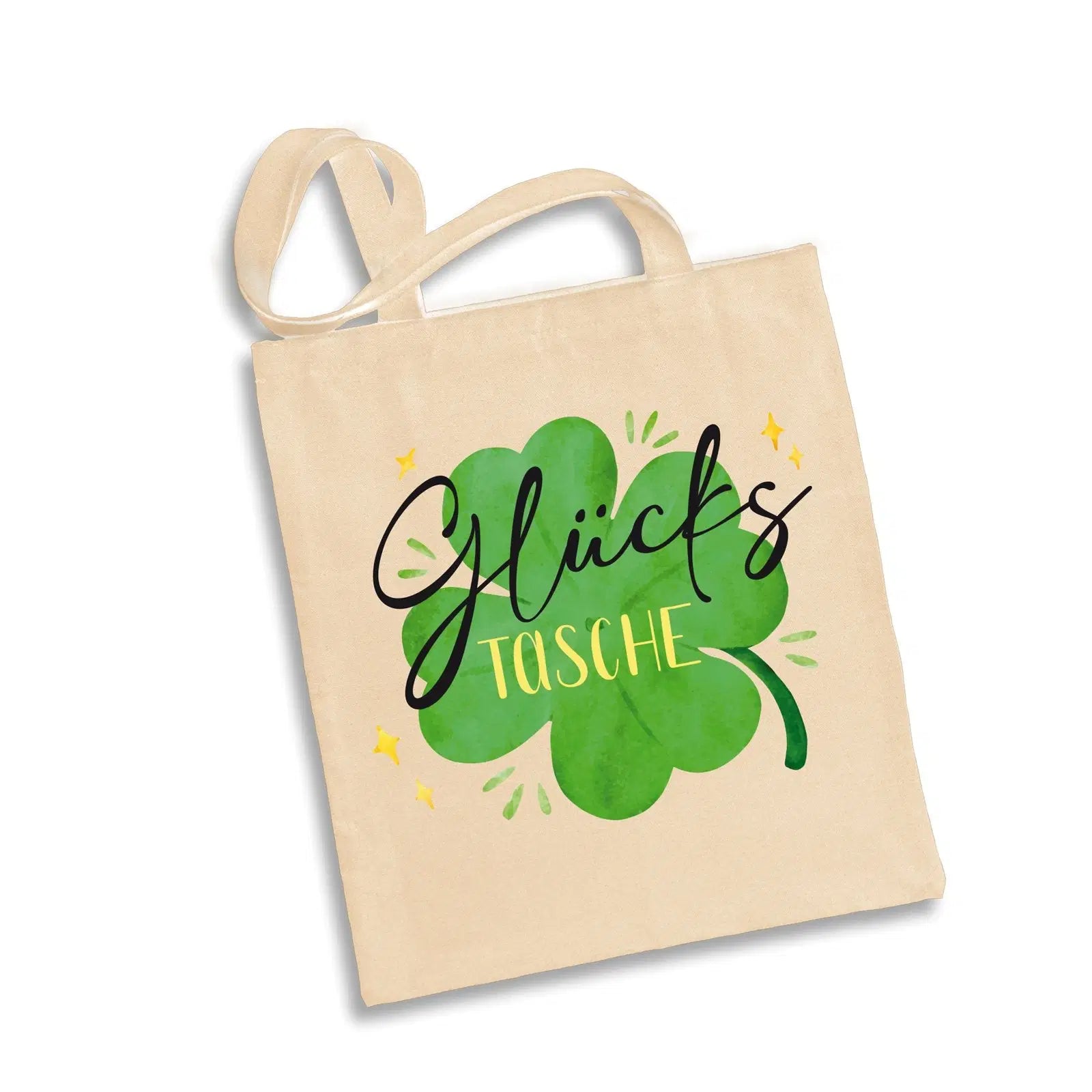 Baumwolltasche mit langen Henkeln und Spruch: Glückstasche 🍀 ✨