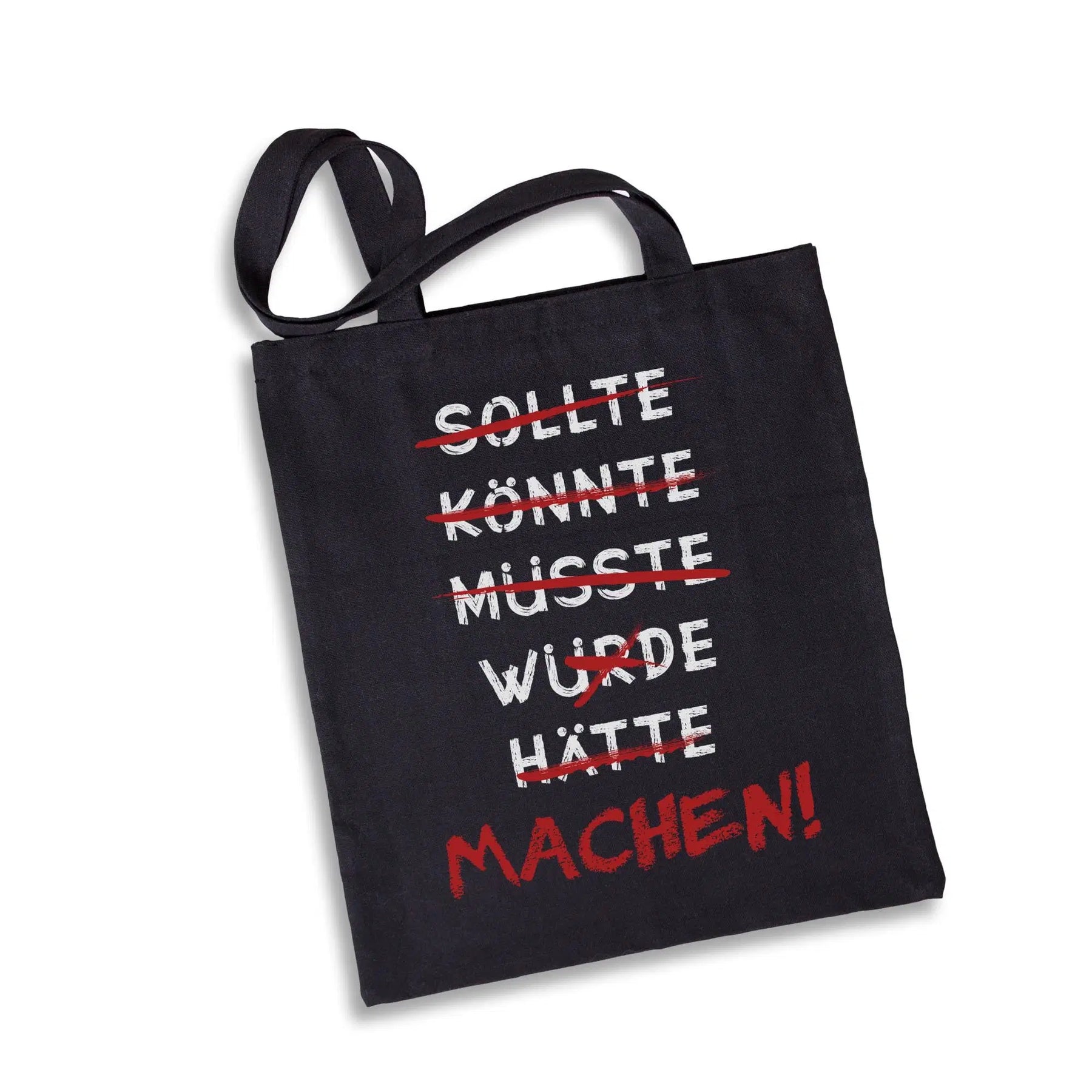Baumwolltasche mit langen Henkeln und Motivationsspruch: