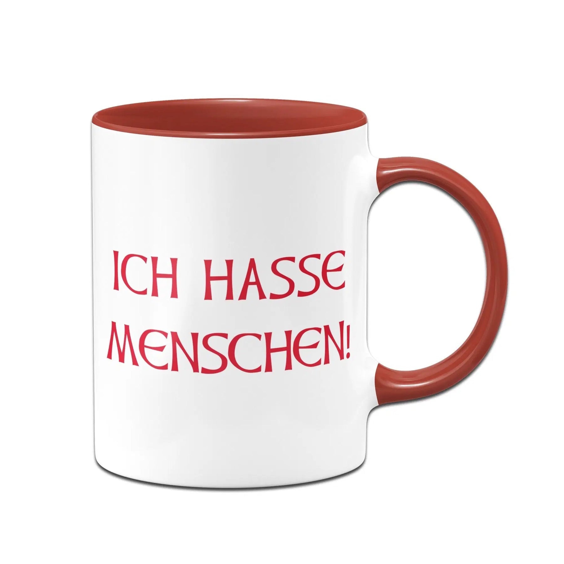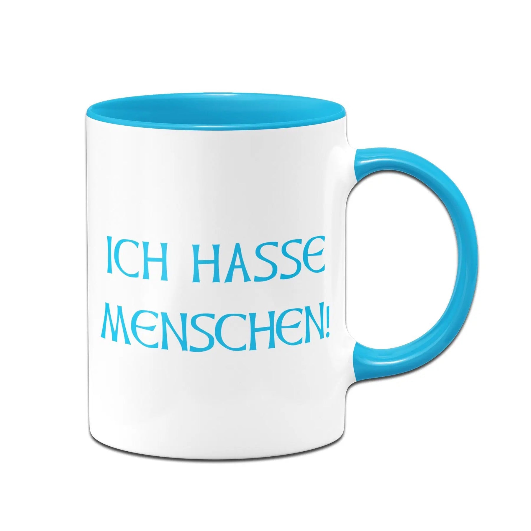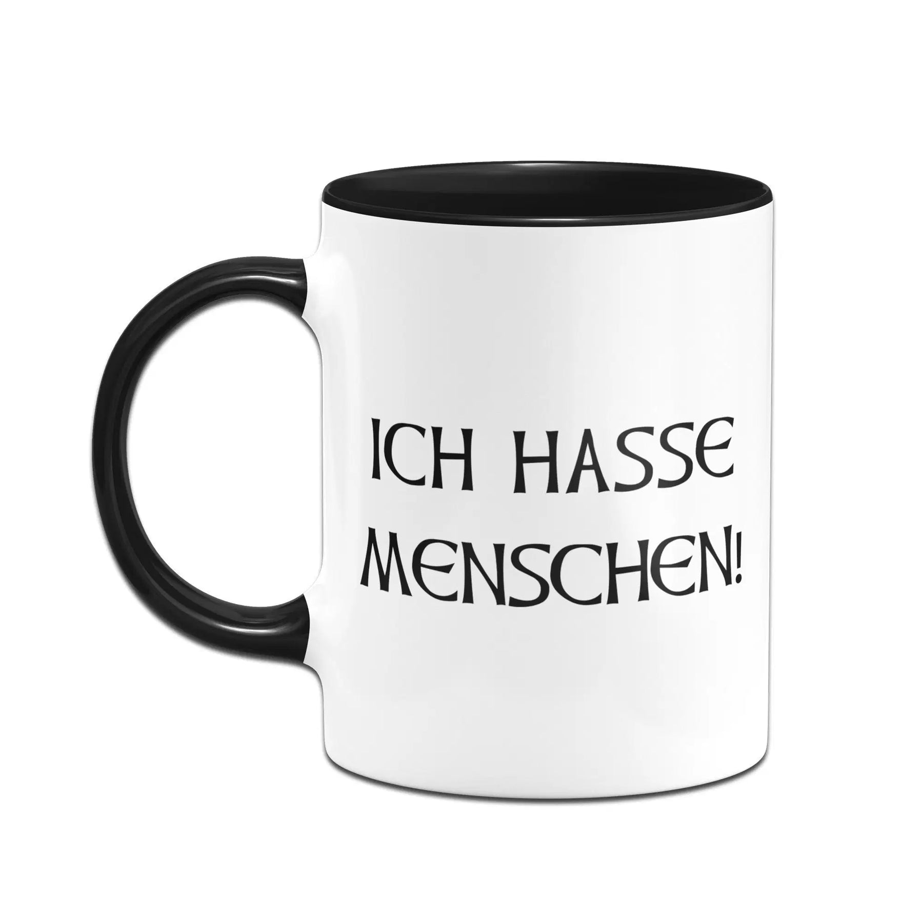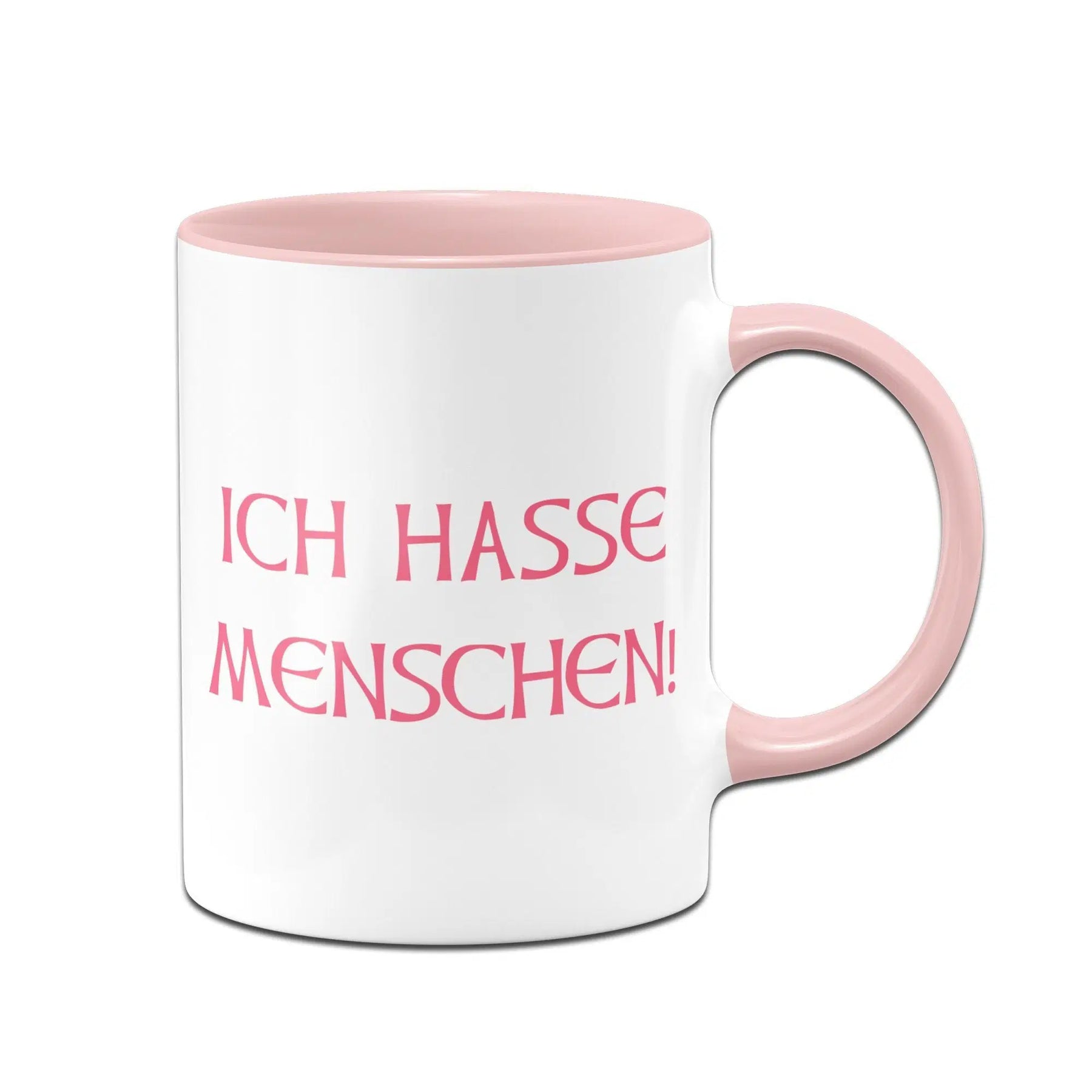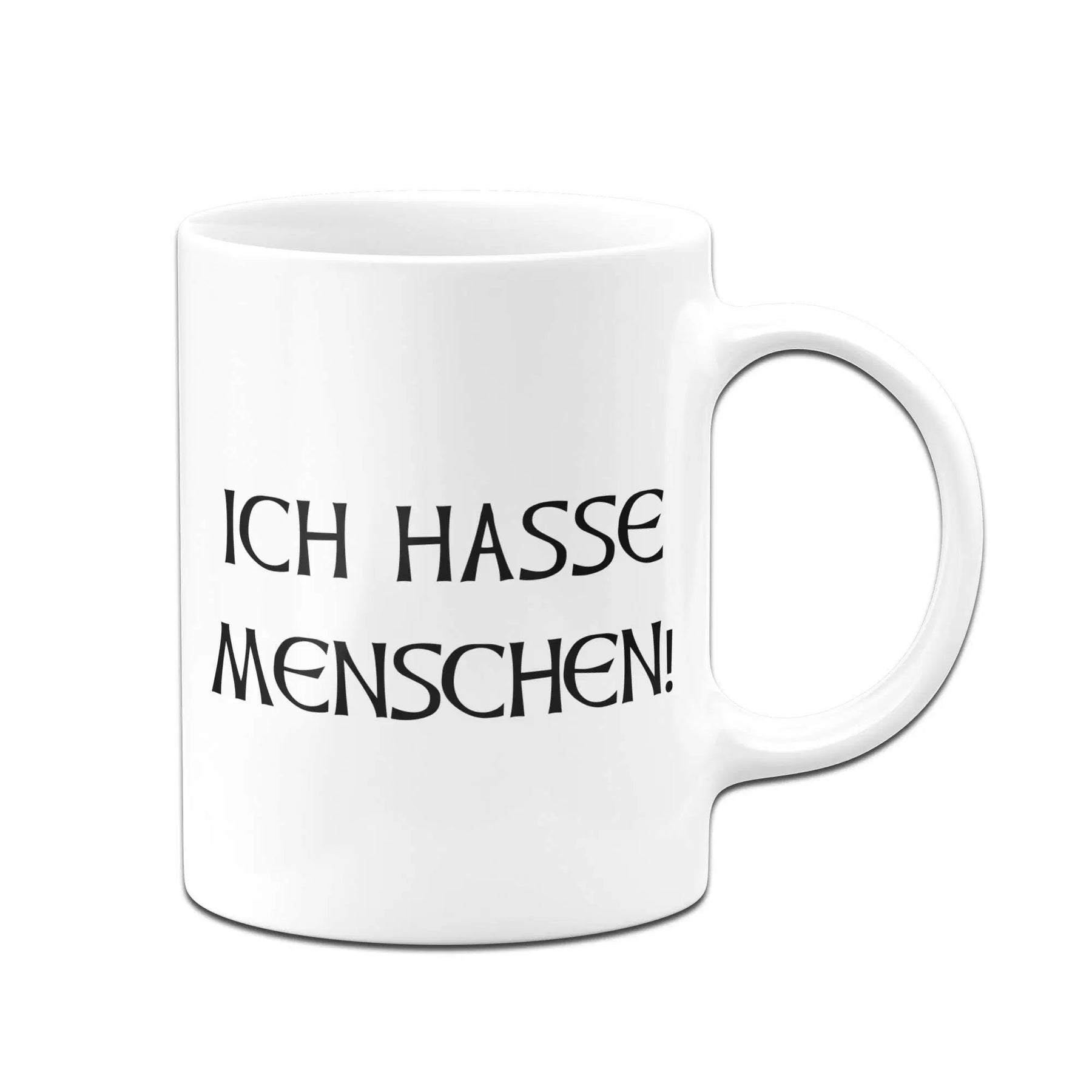 Tasse mit Spruch: Ich hasse Menschen - Schirftzug