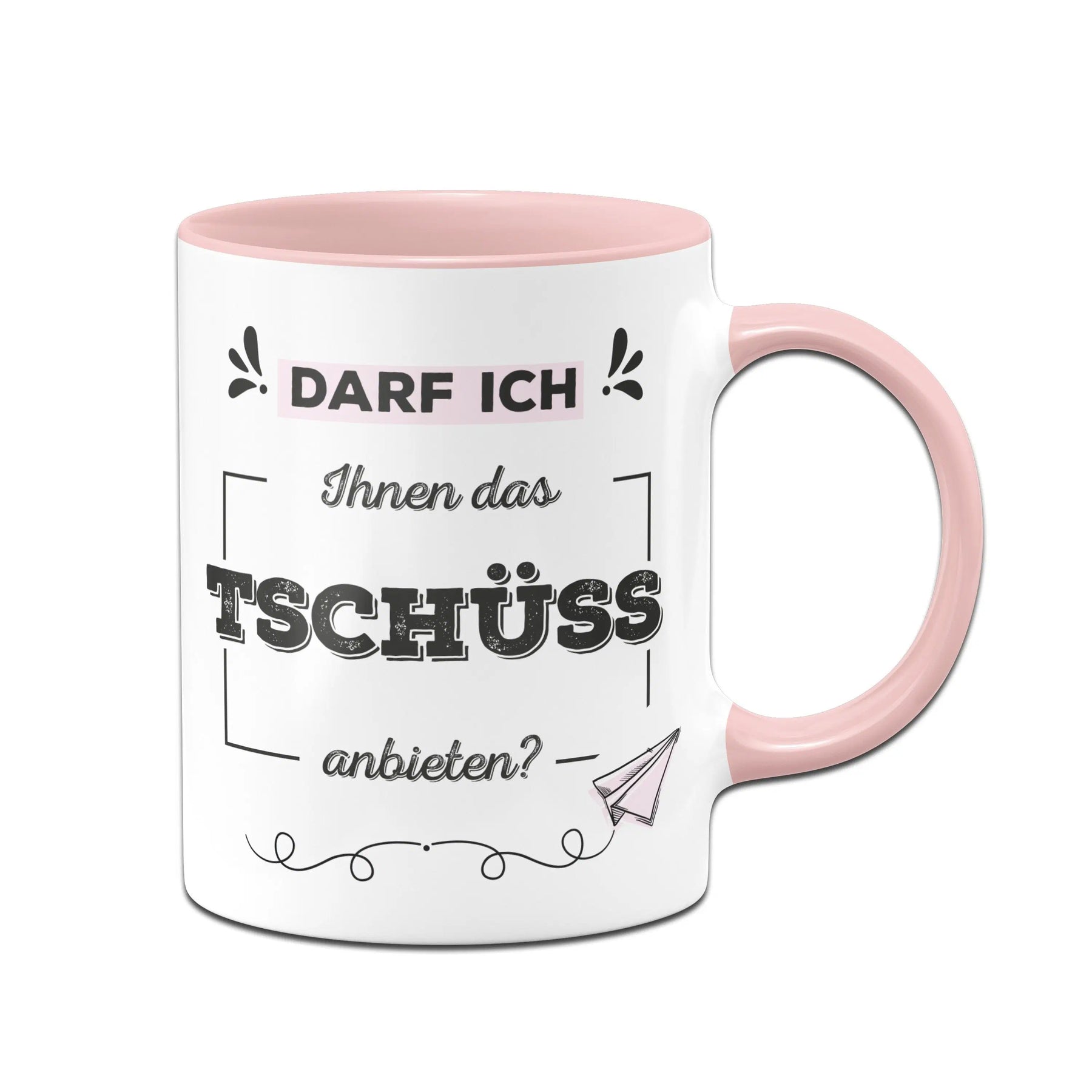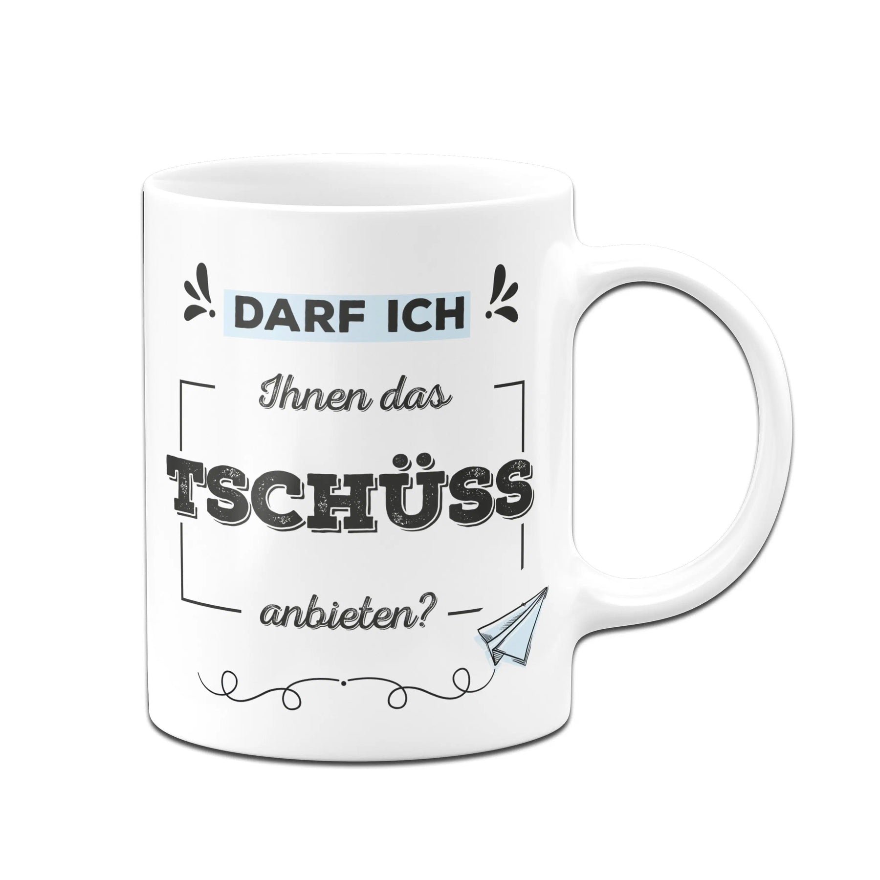 Tasse mit Spruch: Darf ich Ihnen das Tschüss anbieten?