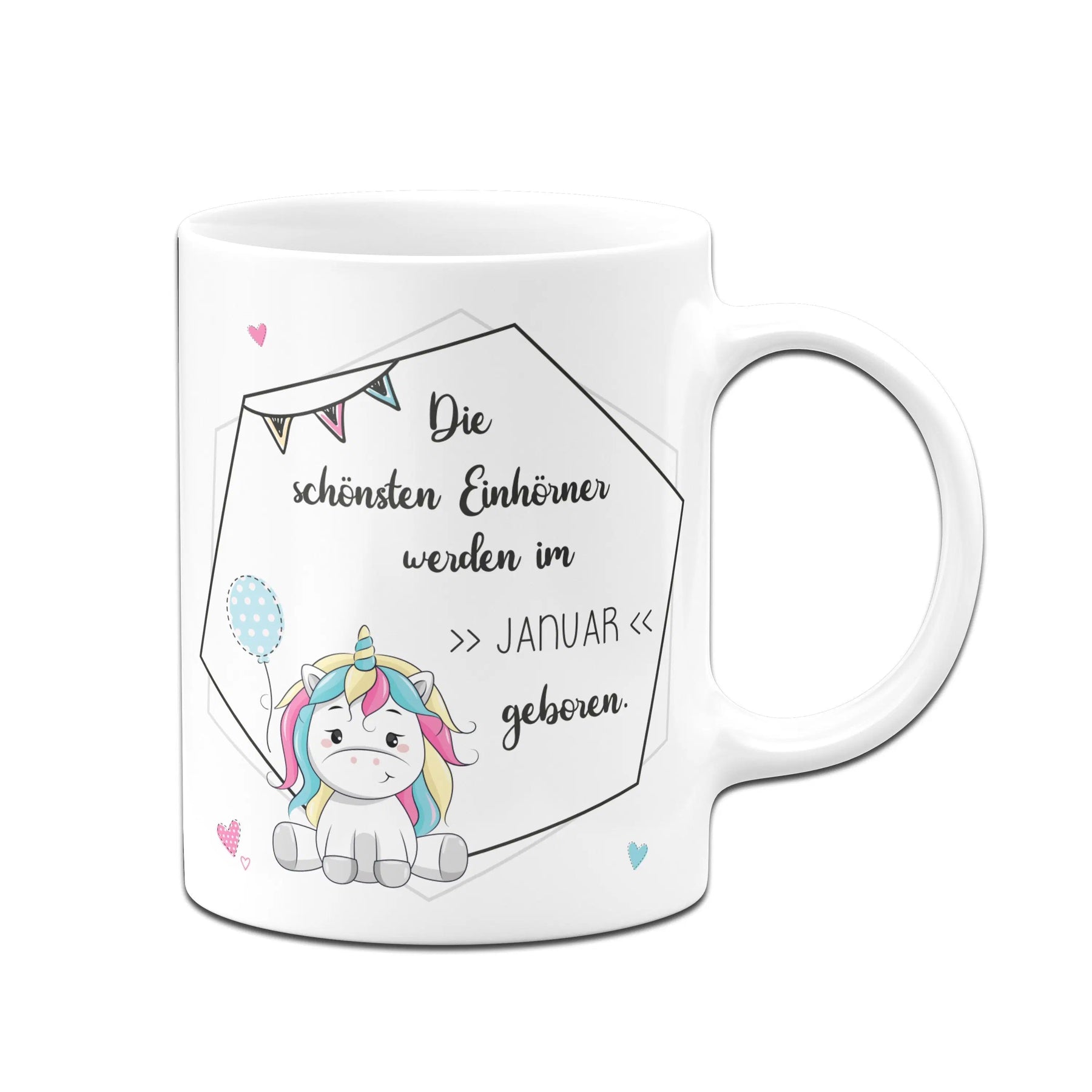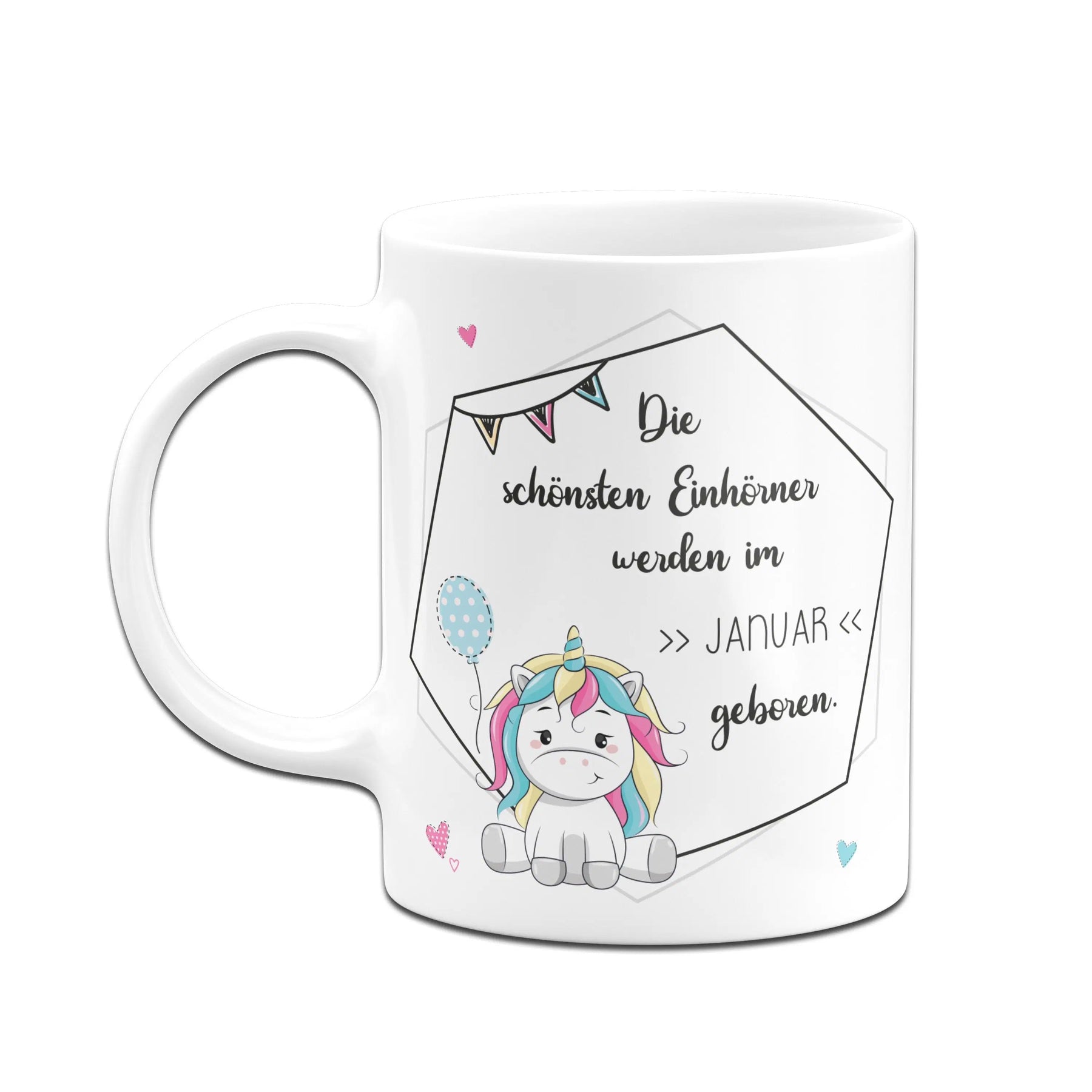 Einhorn-Tasse mit Spruch: Die schönsten Einhörner werden im -Wunschmonat- geboren. 🦄
