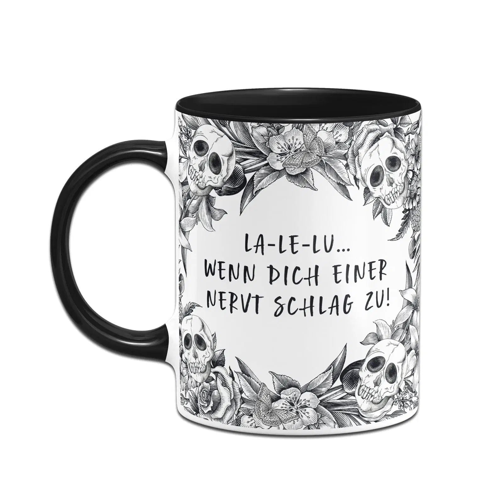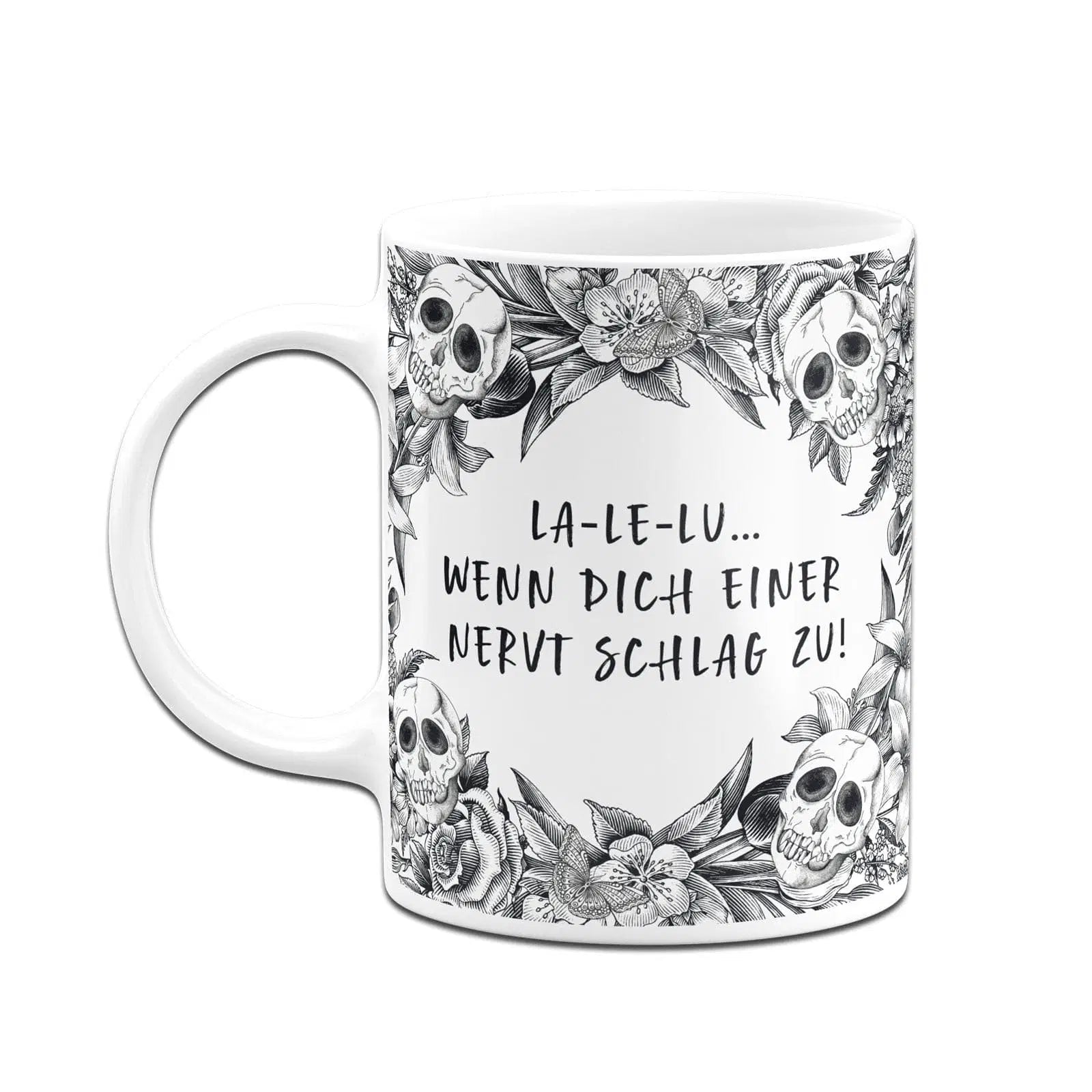 Skull Statement 💀 Totenkopf Tasse mit Spruch: La-Le-Lu Wenn dich einer nervt schlag zu! (im Rundumdruck)
