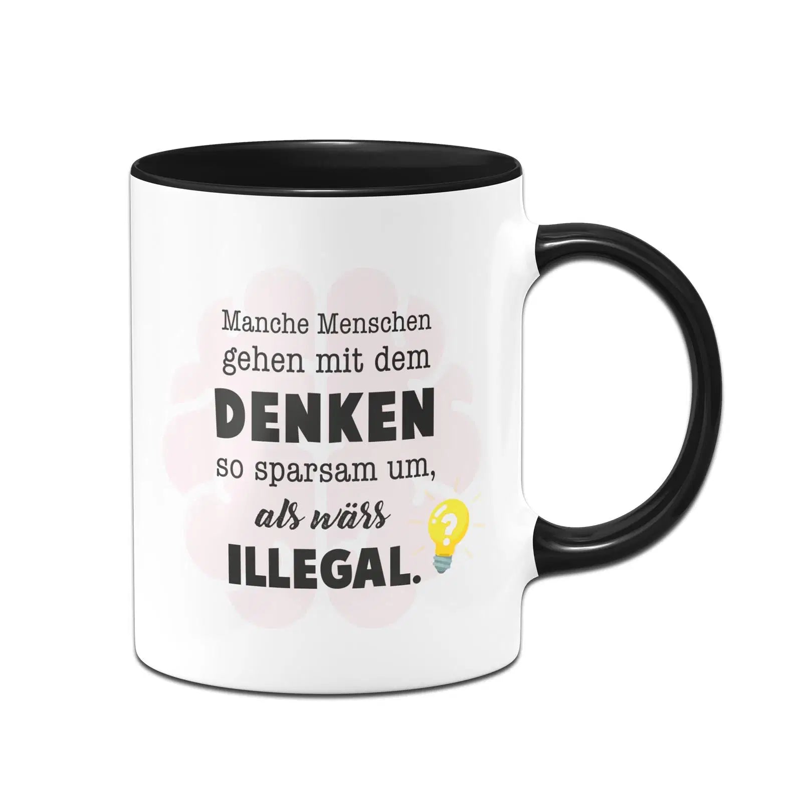 Tasse mit Spruch: Manche Menschen gehen mit dem Denken so sparsam um, als wärs illegal. 💡