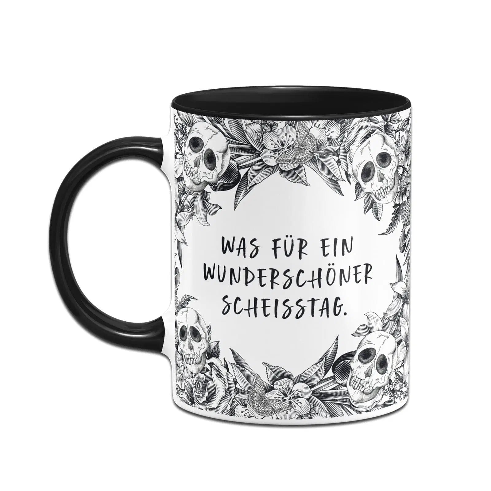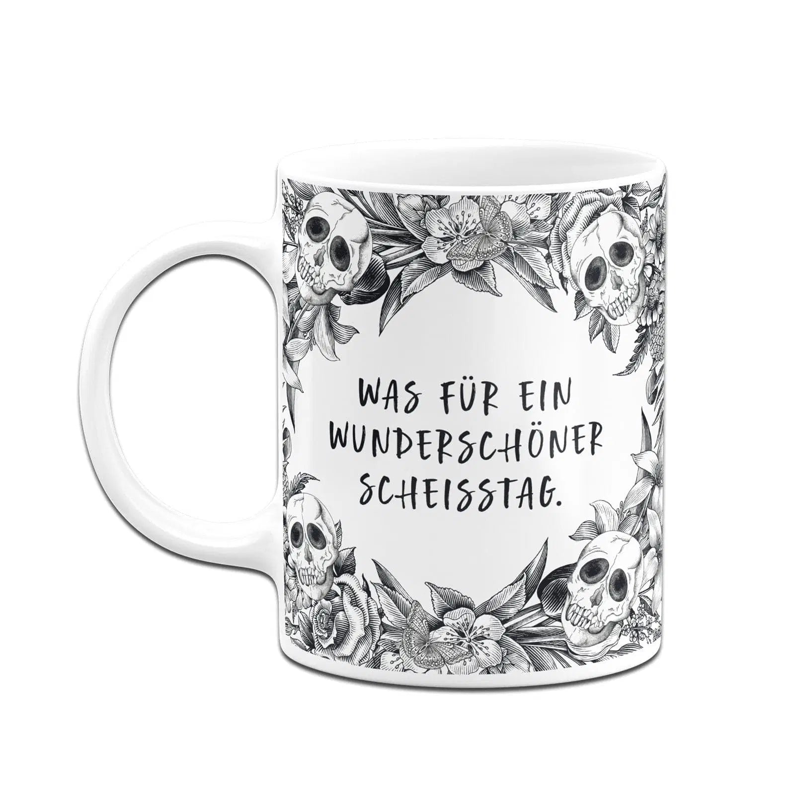 Skull Statement 💀 Totenkopf Tasse mit Spruch: Was für ein wunderschöner Scheisstag. (im Rundumdruck)