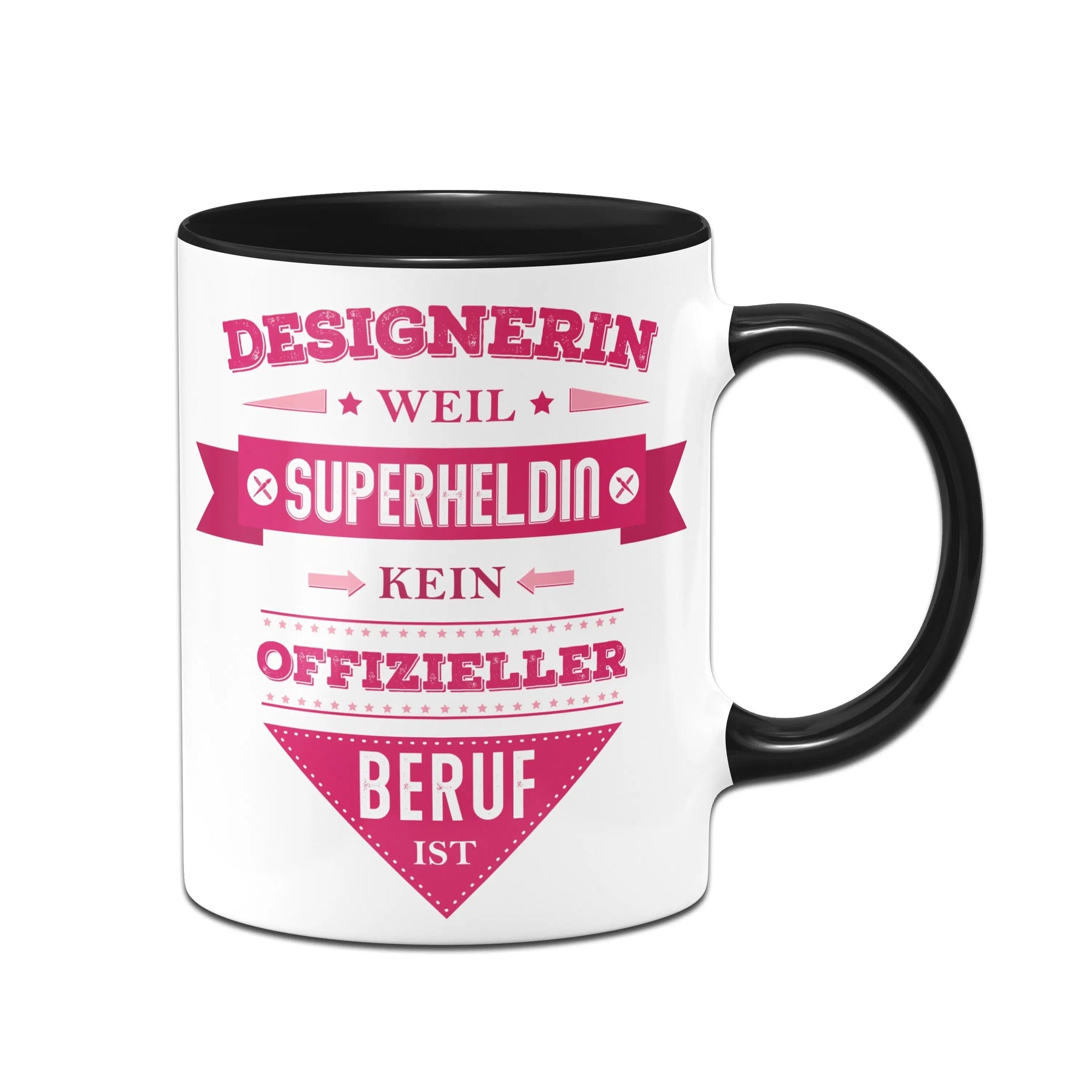 Tasse mit Spruch: Designerin, weil Superheldin kein offizieller Beruf ist ⭐