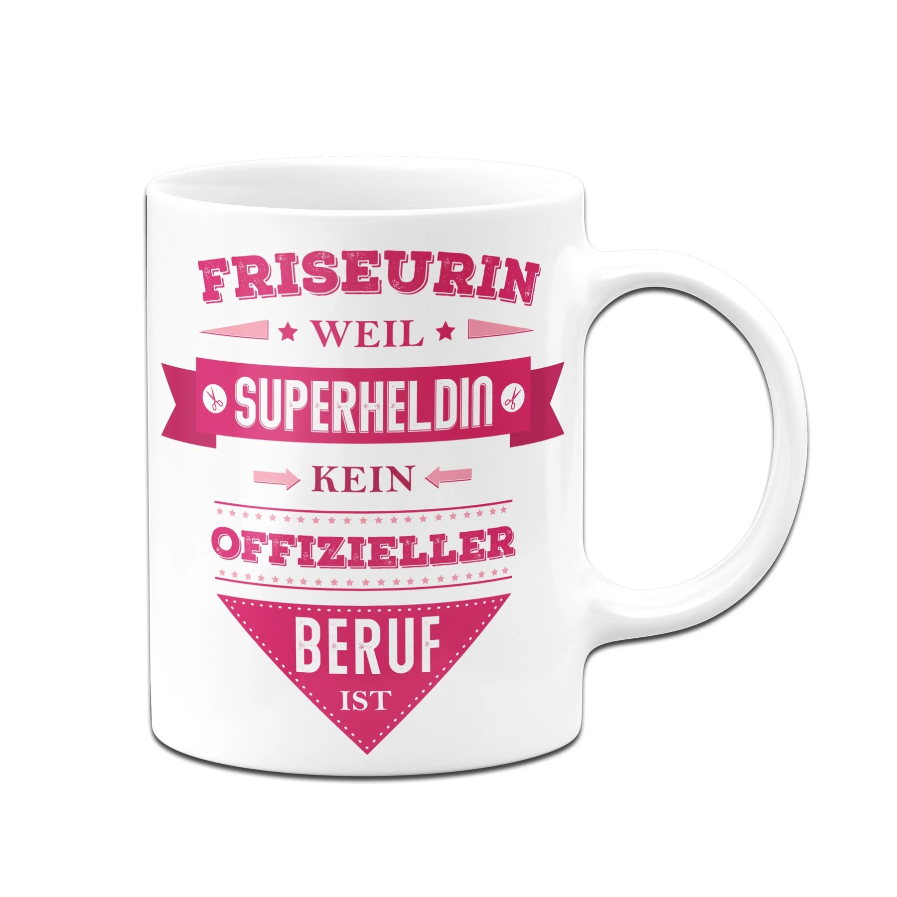 Tasse mit Spruch: Friseurin, weil Superheldin kein offizieller Beruf ist ⭐