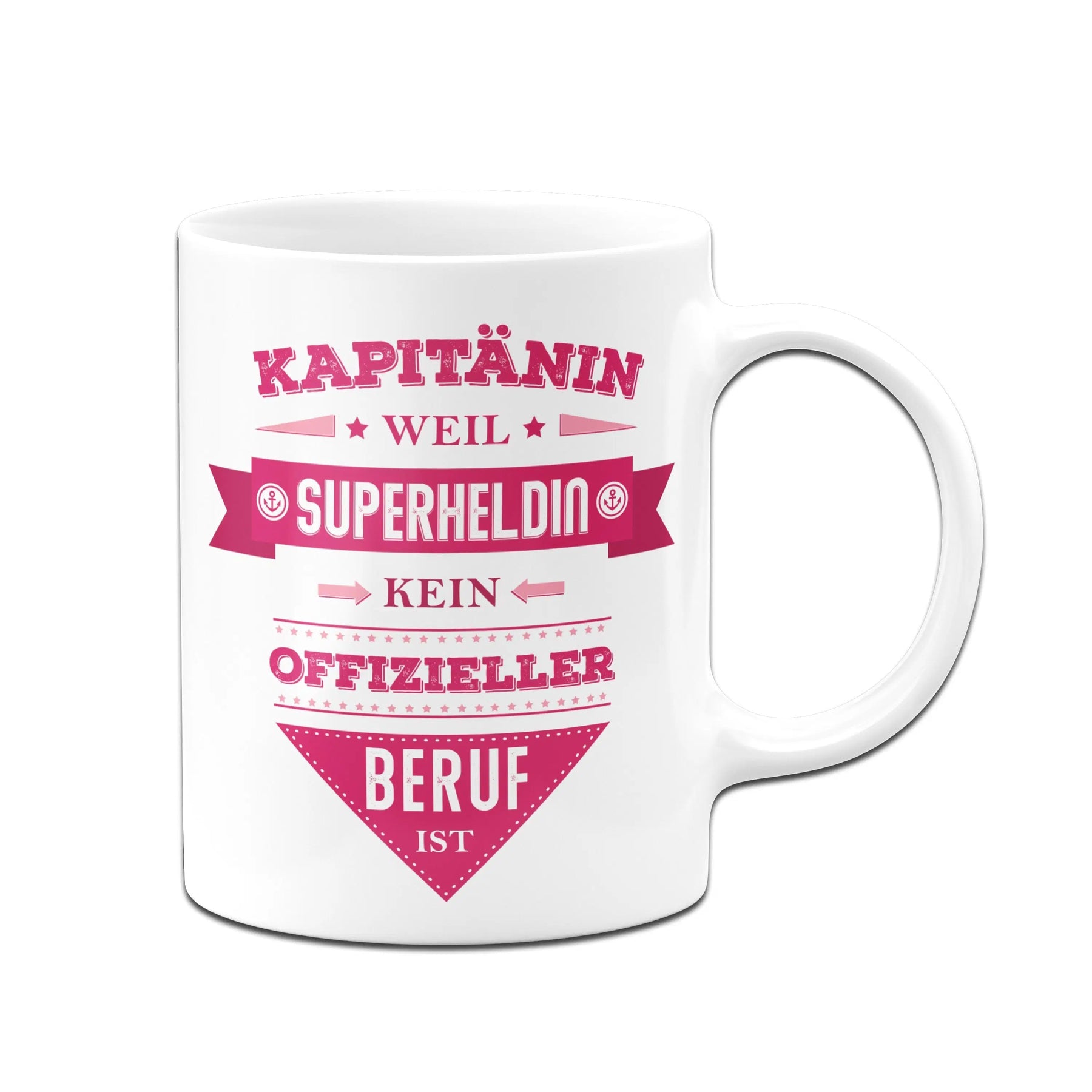 Tasse mit Spruch: Kapitänin, weil Superheldin kein offizieller Beruf ist ⭐