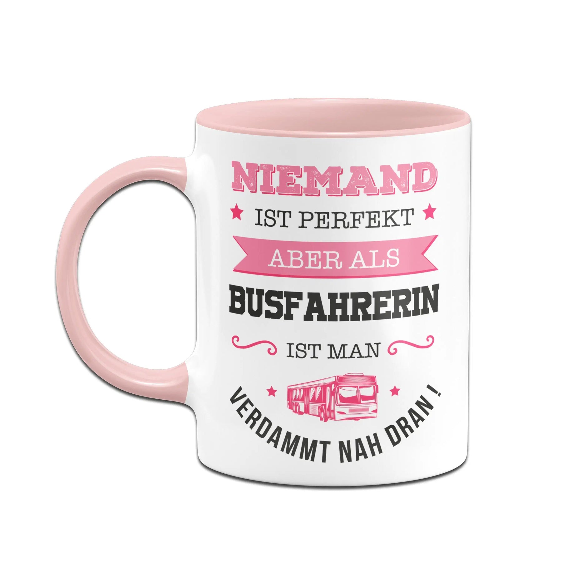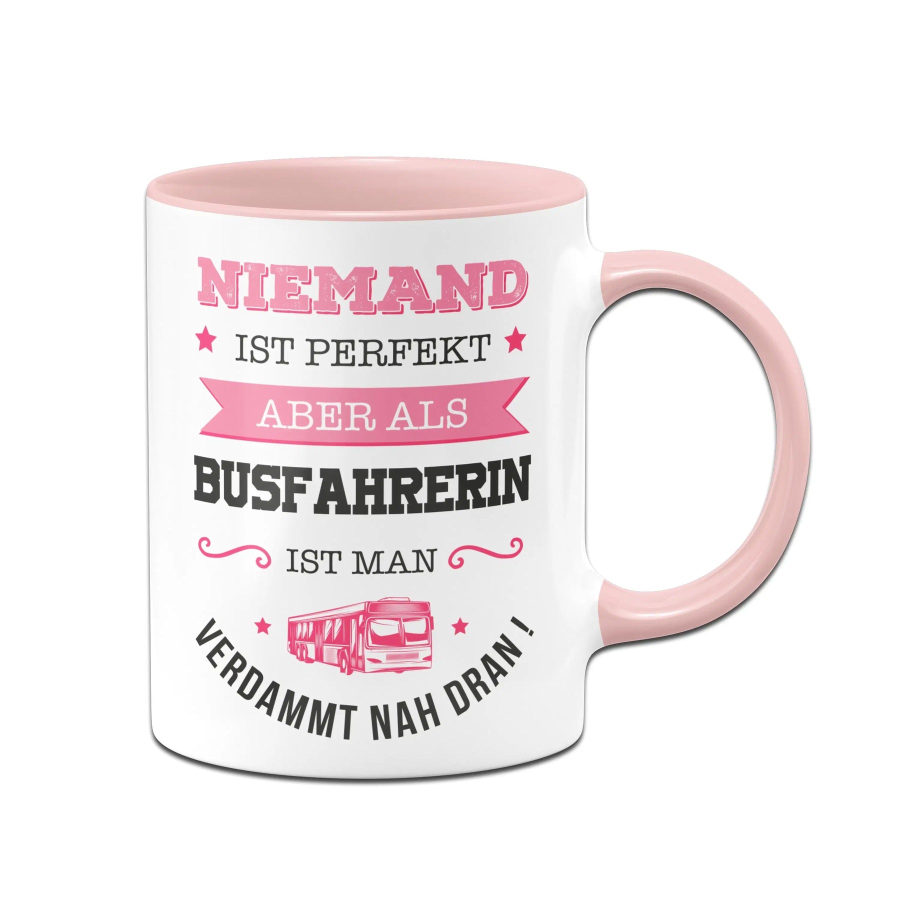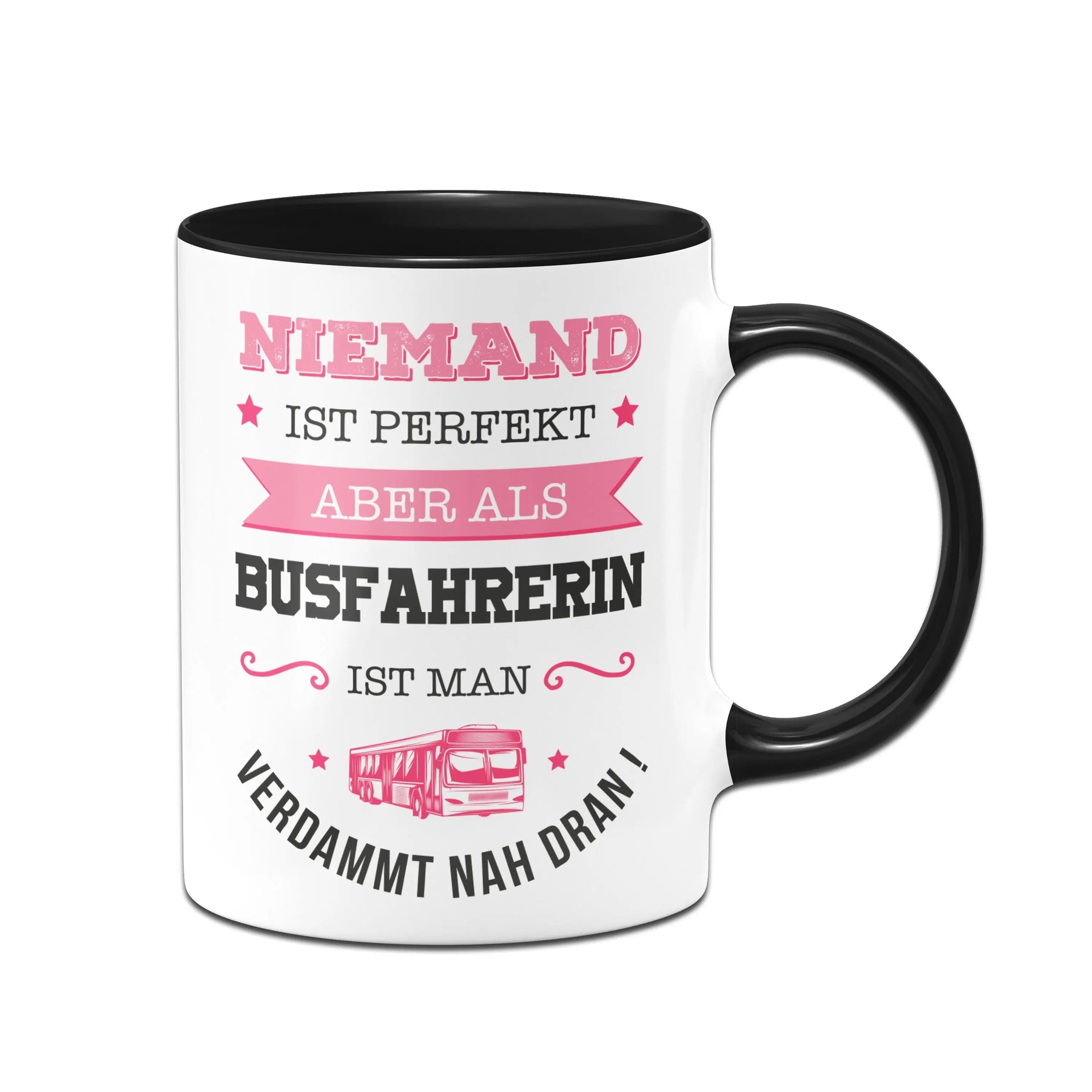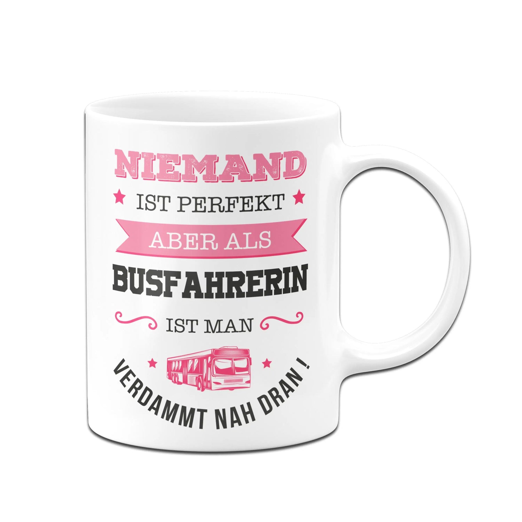 Tasse mit Spruch: Niemand ist perfekt aber als Busfahrerin ist man verdammt nah dran! ⭐​