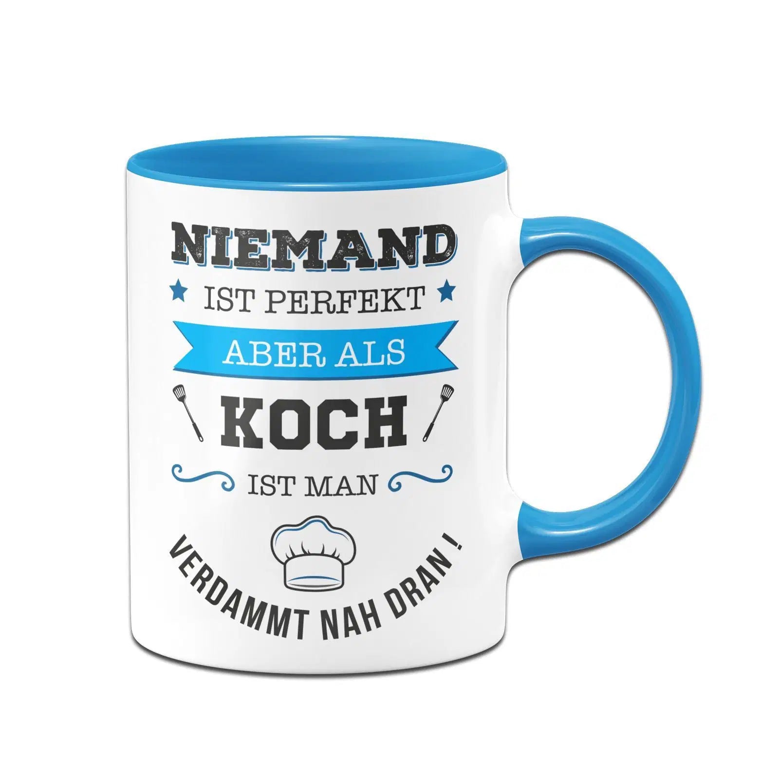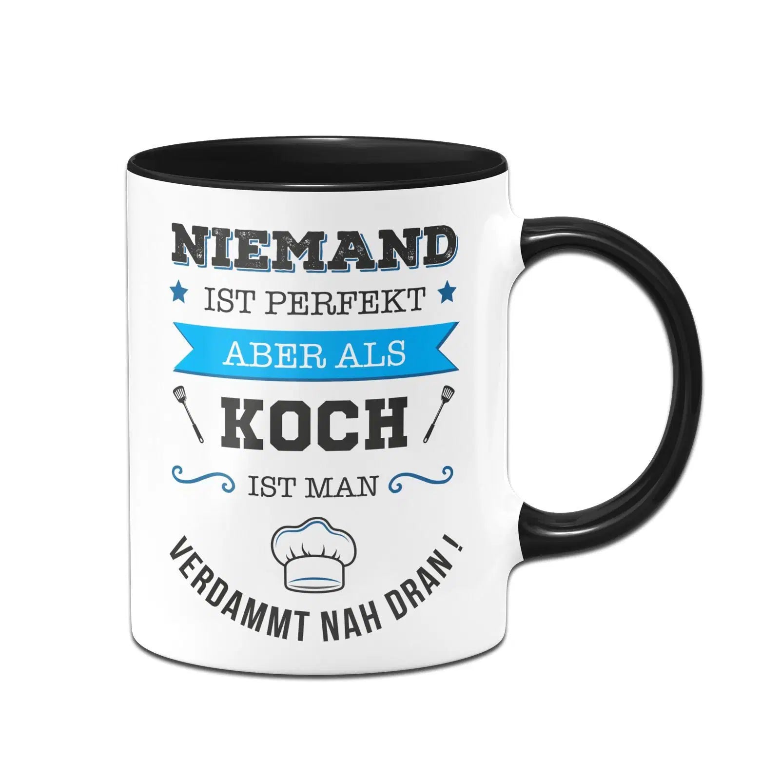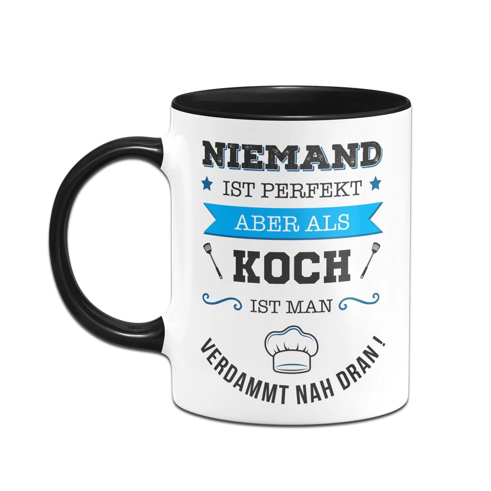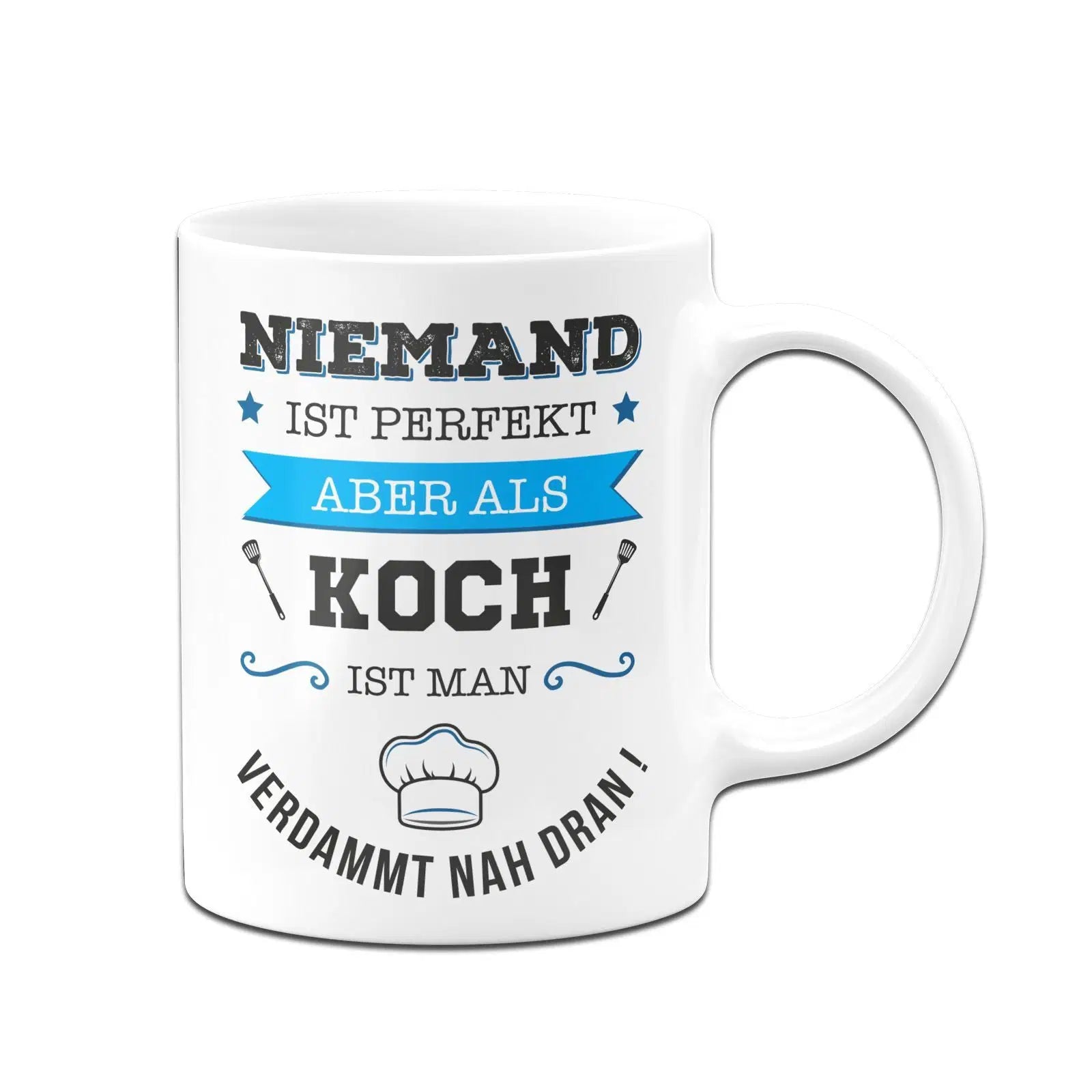 Tasse mit spruch: Niemand ist perfekt aber als Koch ist man verdammt nah dran! ⭐
