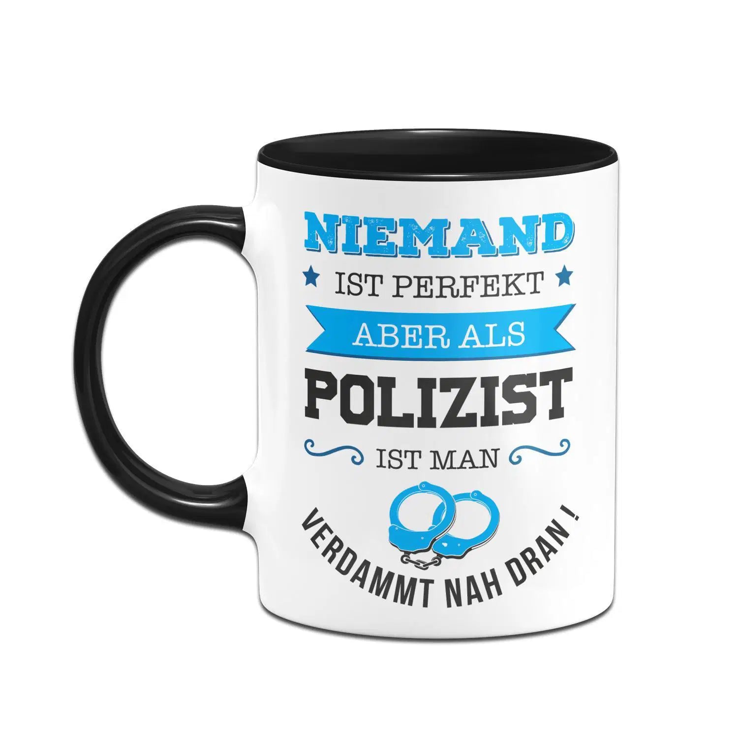 Tasse mit spruch: Niemand ist perfekt aber als Polizist ist man verdammt nah dran! ⭐