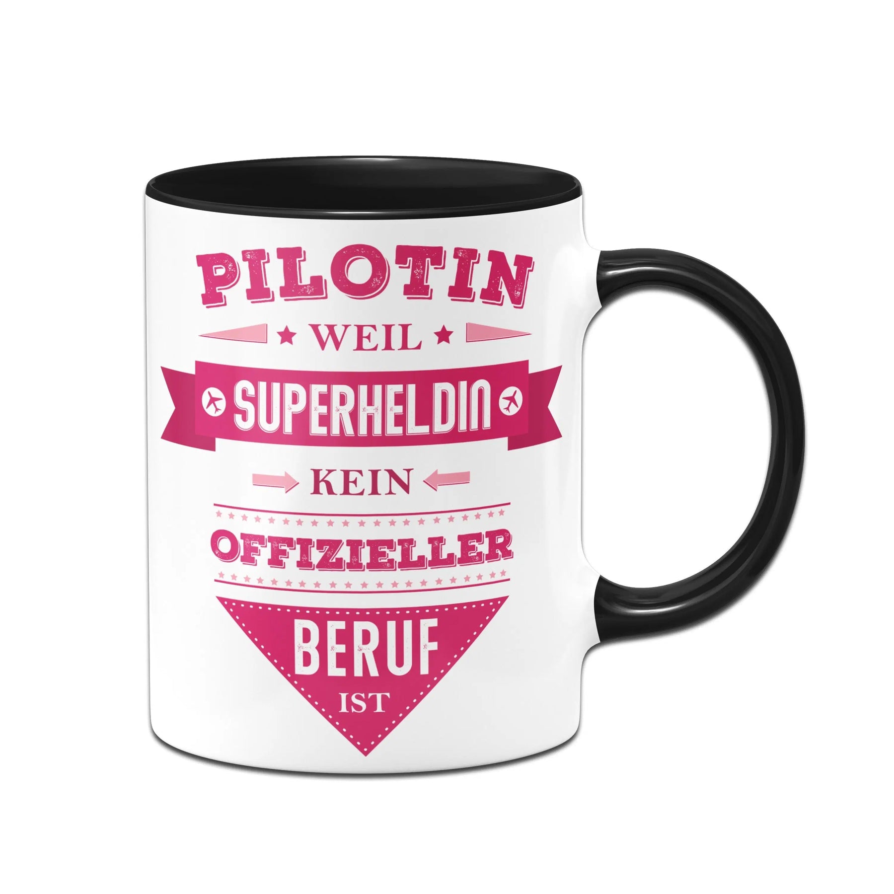 Tasse mit Spruch: Pilotin, weil Superheldin kein offizieller Beruf ist ⭐