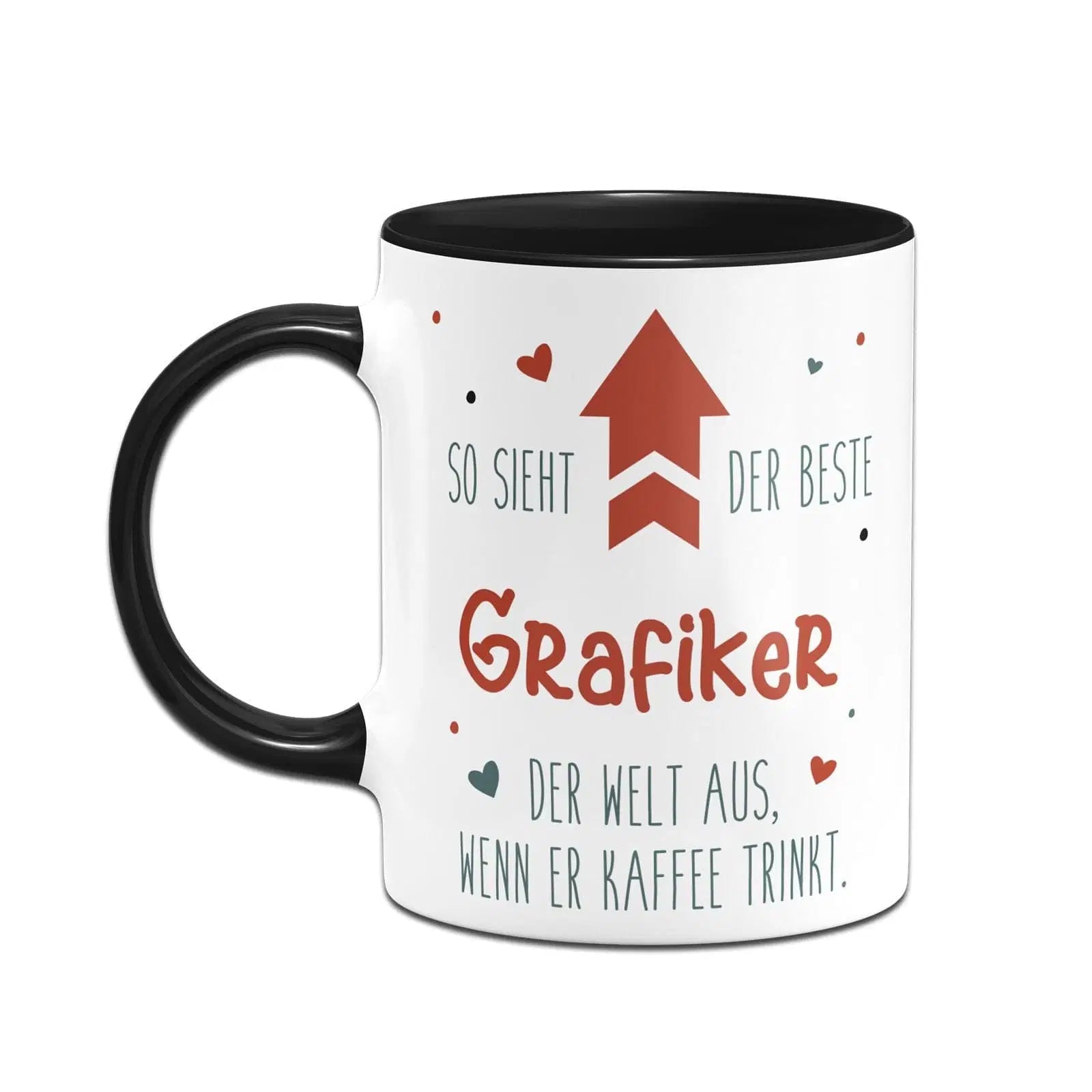 Tasse mit Spruch: So sieht der beste Grafiker der Welt aus ⬆️ wenn er Kaffee trinkt. ❤️