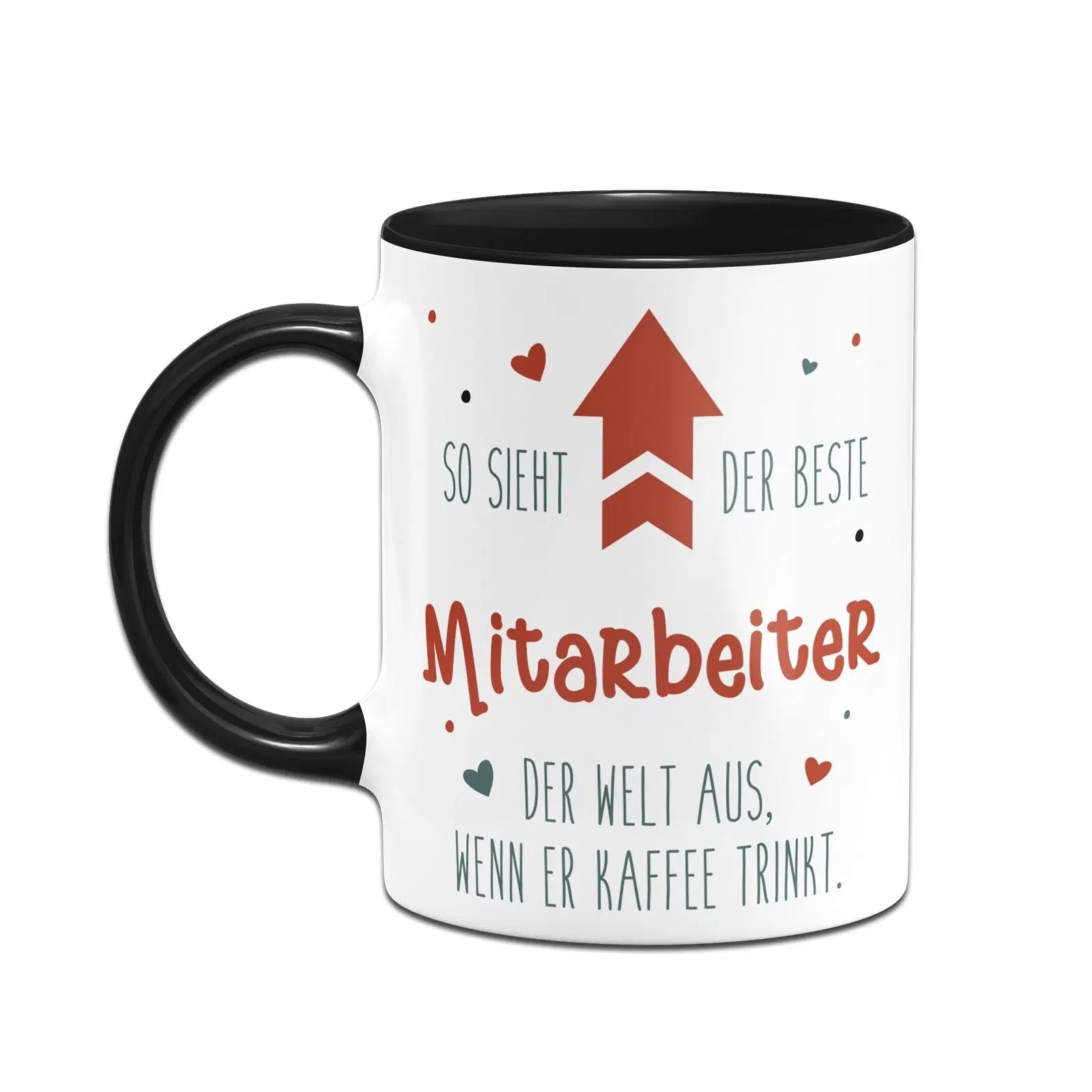 Tasse mit Spruch: So sieht der beste Mitarbeiter der Welt aus ​⬆️​ wenn er Kaffee trinkt. ❤️​
