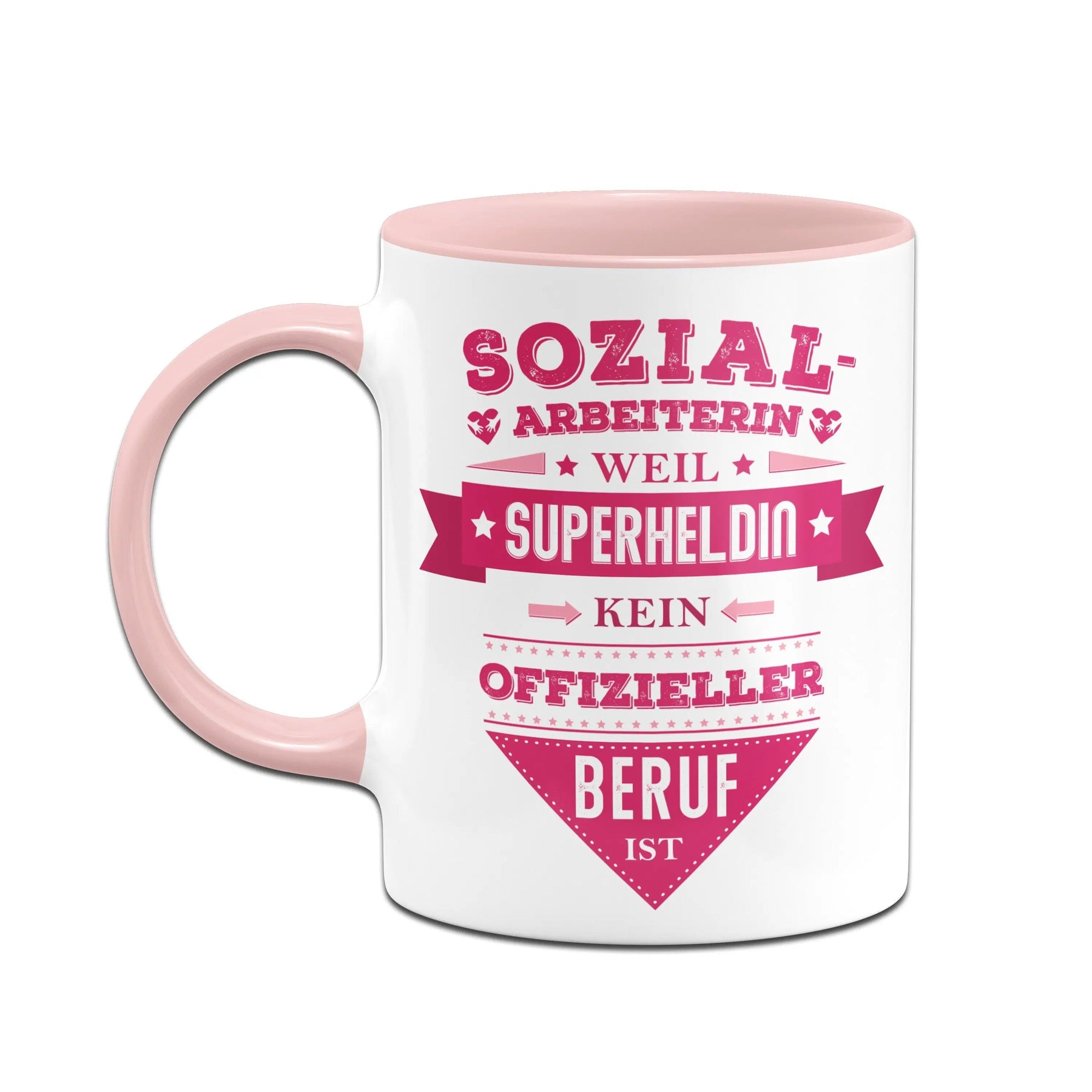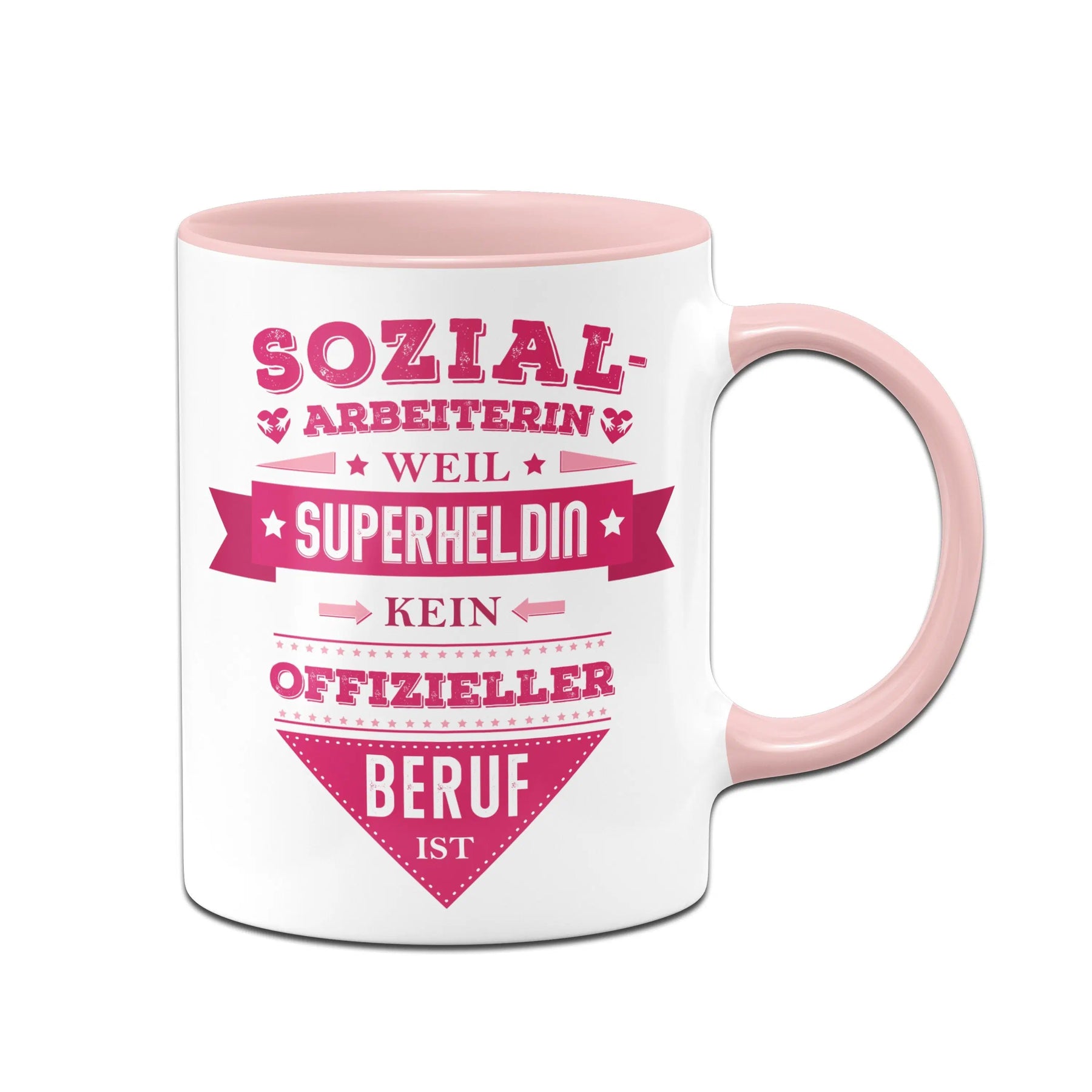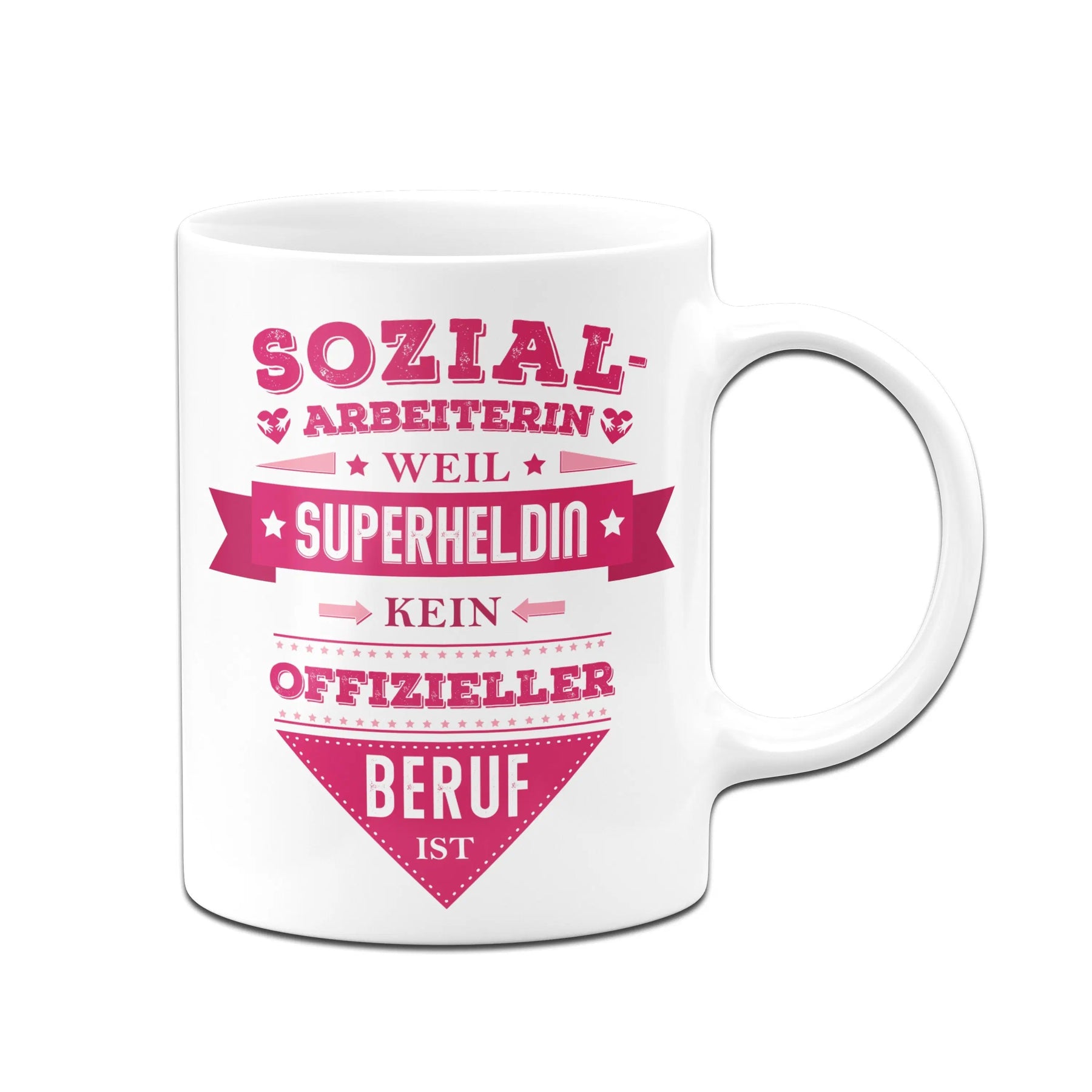 Tasse mit Spruch: Sozialarbeiterin, weil Superheldin kein offizieller Beruf ist ⭐