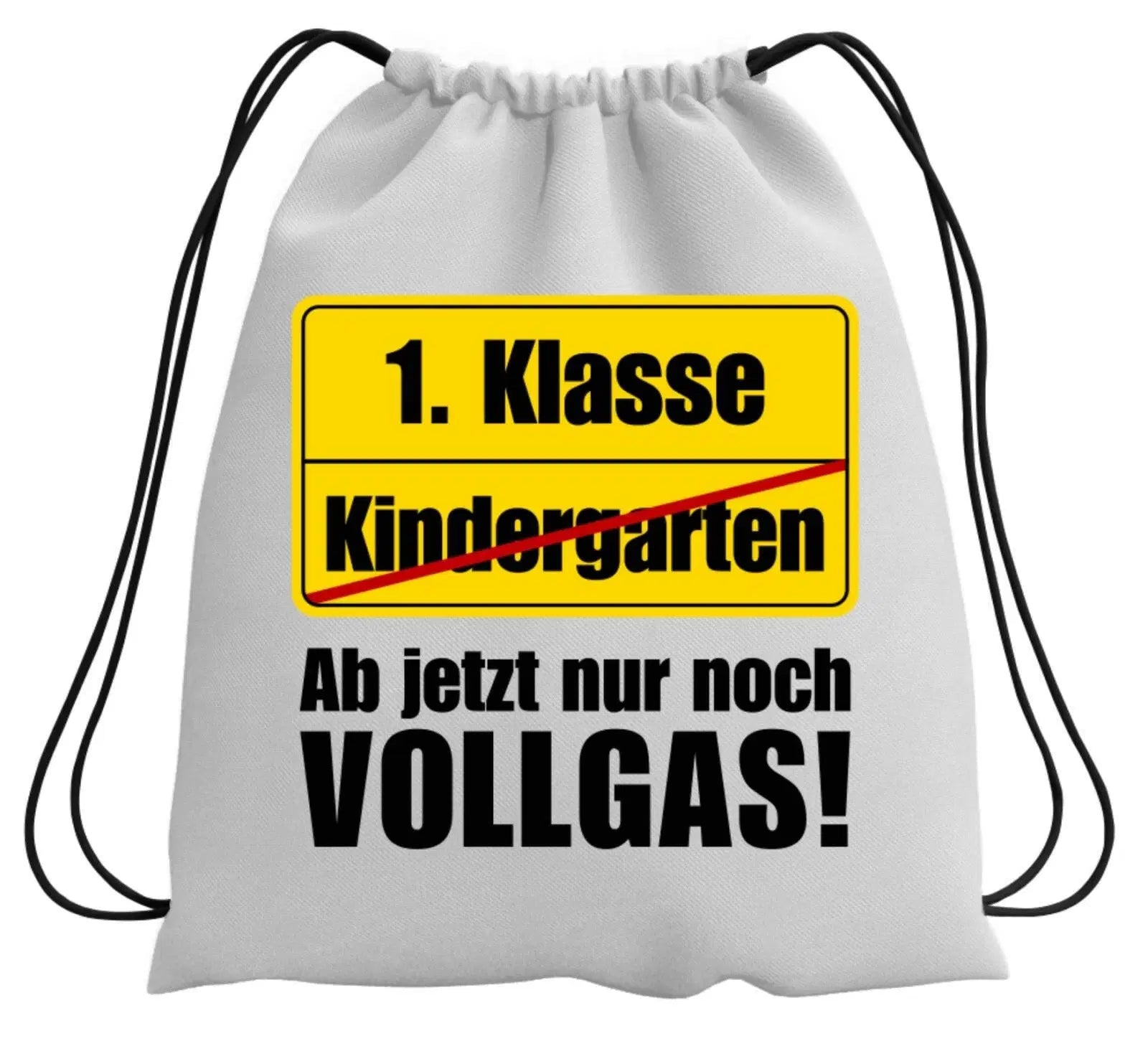 Turnbeutel - Rucksack mit Spruch: 1. Klasse K̶i̶n̶d̶e̶r̶g̶a̶r̶t̶e̶n̶  Ab jetzt nur noch Vollgas!