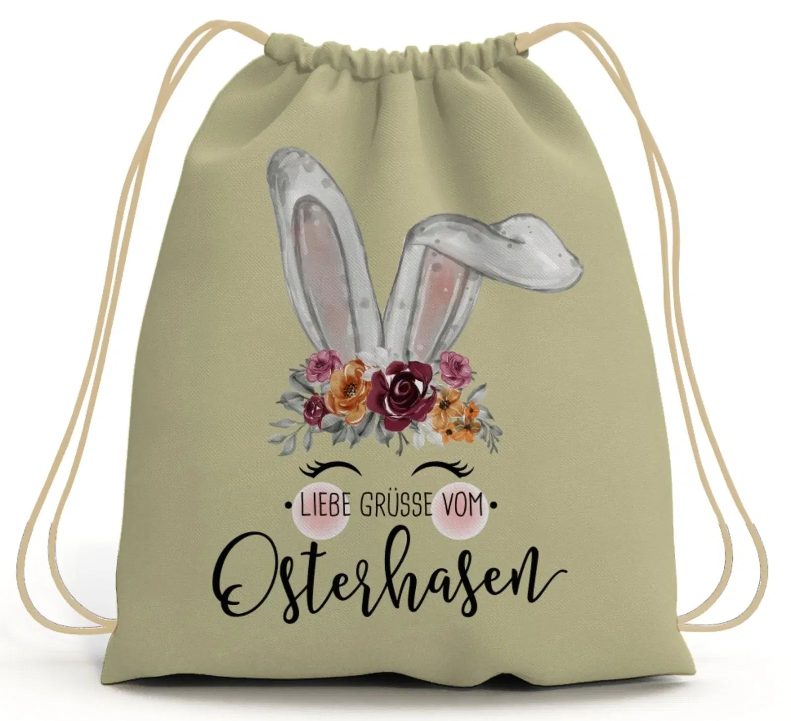 Turnbeutel - Rucksack mit Spruch: Liebe Grüsse vom Osterhasen 🐰 🌺