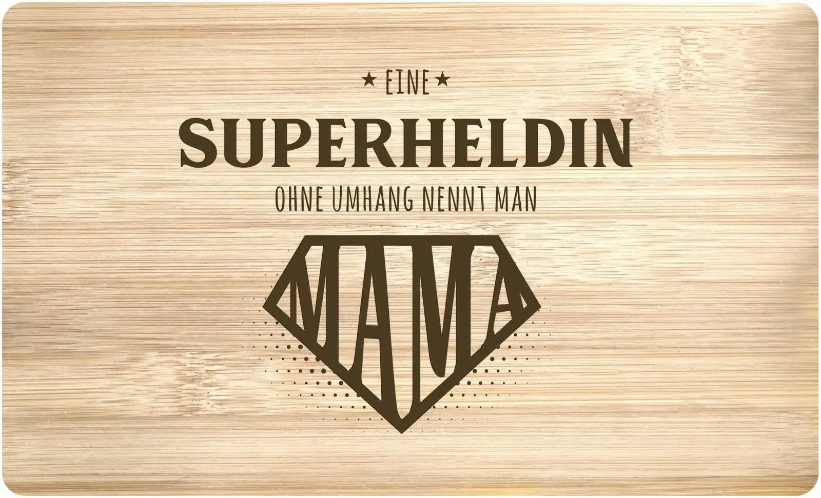 Echtholz Frühstücksbrettchen aus unbehandelter Buche mit Spruch: Eine Superheldin ohne Umhang nennt man Mama ⭐