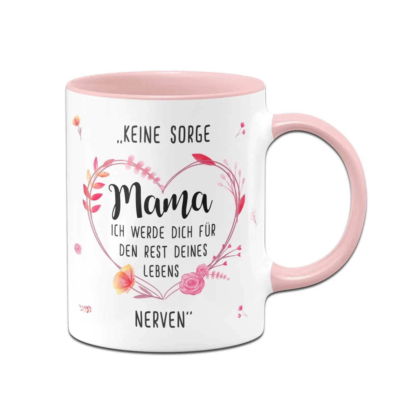 Tasse mit Spruch: Keine Sorge Mama ​🌸​ Ich werde Dich für den Rest Deines Lebens nerven.