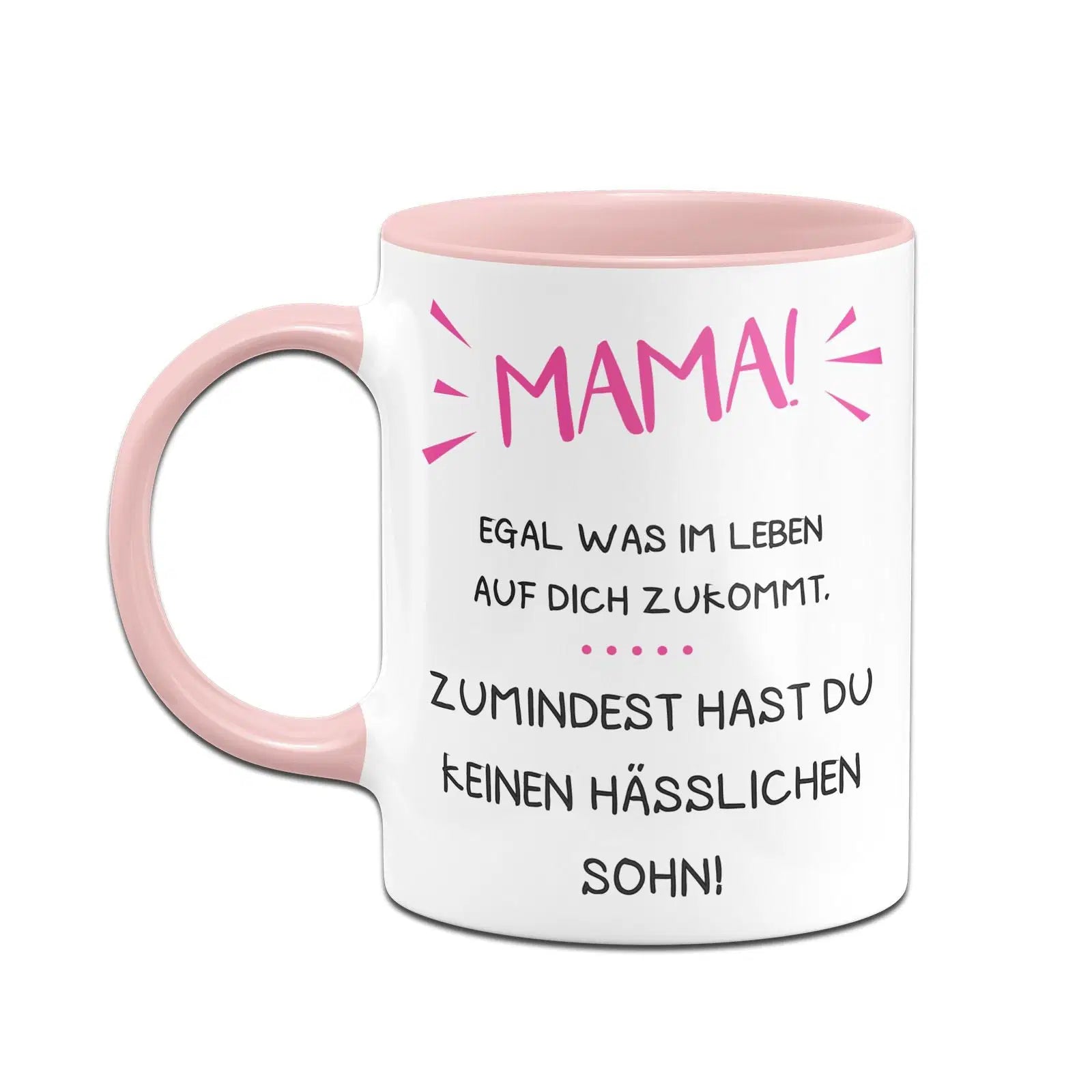 Tasse mit Spruch: Mama! Egal was im Leben auf Dich zukommt, zumindest hast Du keinen hässlichen Sohn!