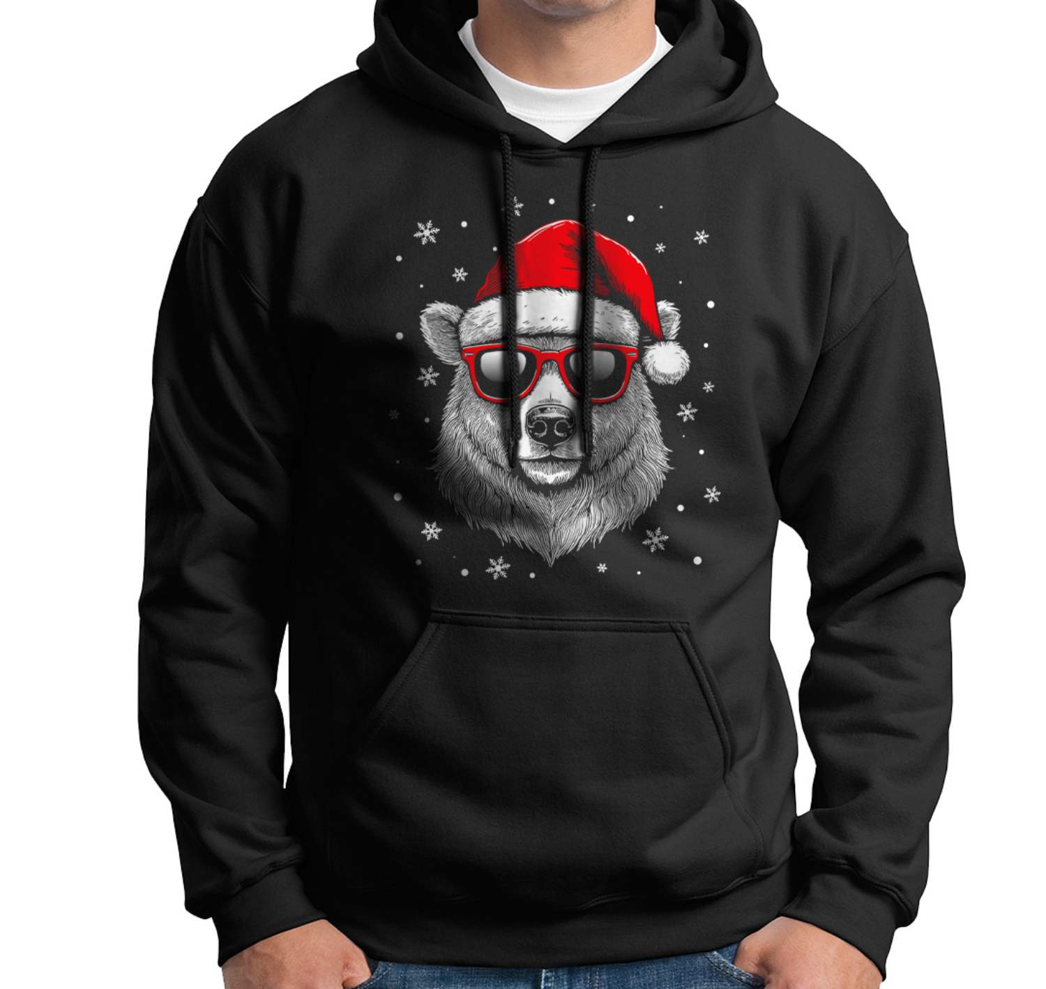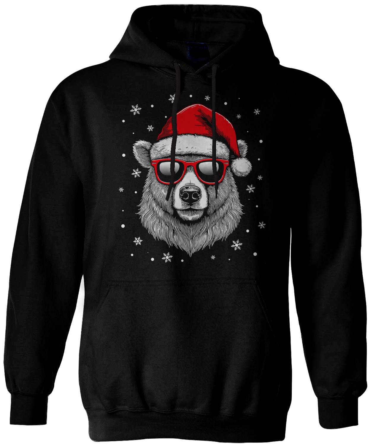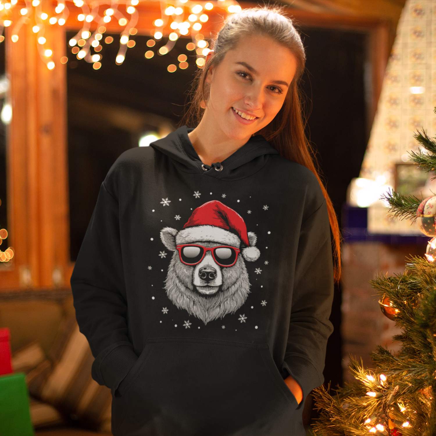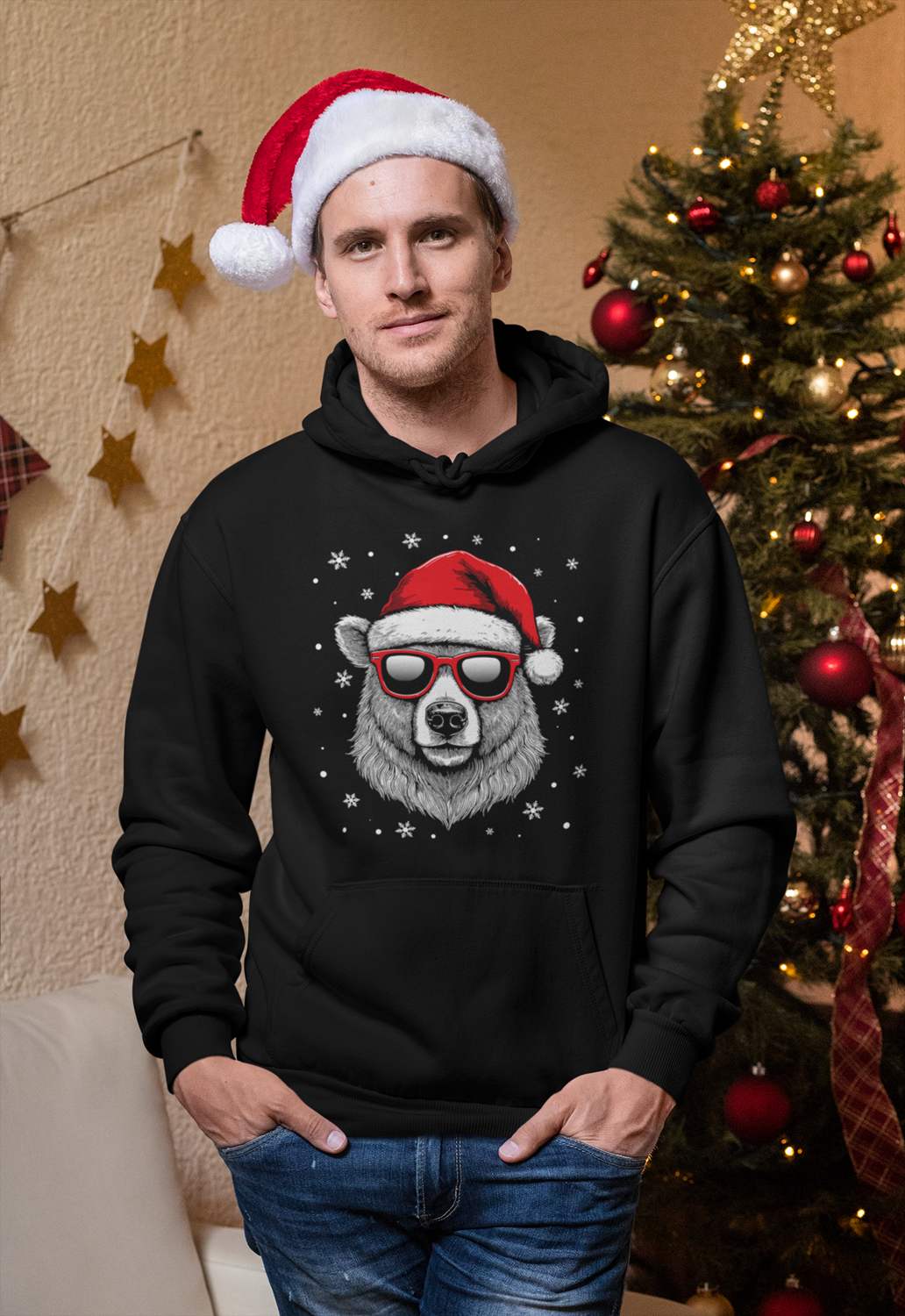 Dieser Eisbär ist nicht einfach nur weihnachtlich – er ist cooler als der Weihnachtsmann persönlich! Mit lässiger Sonnenbrille, festlicher Weihnachtsmütze und einem verschneiten Hintergrund ist dieser Hoodie der ideale Begleiter für alle, die Weihnachten mit Humor und einem Faible für arktische Tiere feiern.