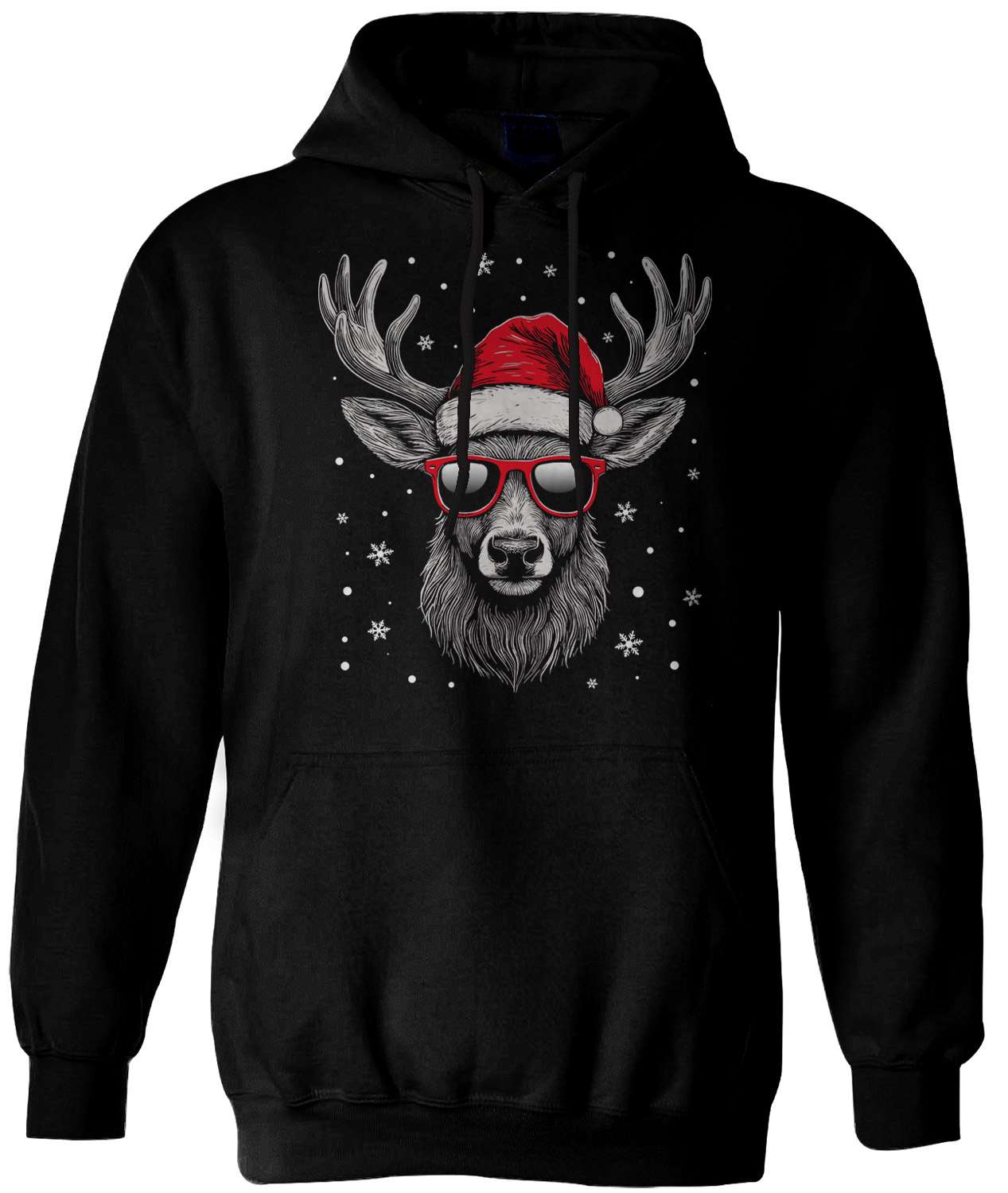 Dieses Rentier ist nicht einfach nur weihnachtlich – es ist cooler als der Weihnachtsmann persönlich! Mit Sonnenbrille, lässiger Weihnachtsmütze und schneebedecktem Hintergrund ist dieser Hoodie der perfekte Begleiter für alle, die Weihnachten mit einem Augenzwinkern feiern.