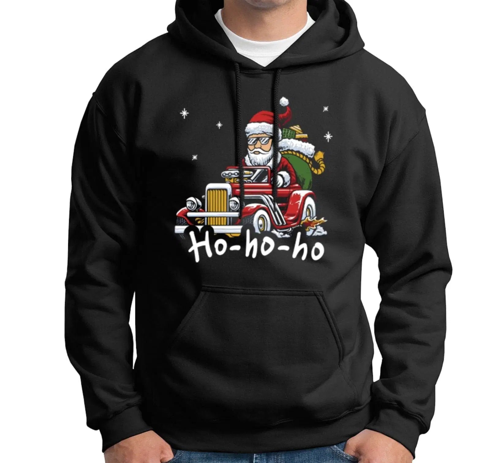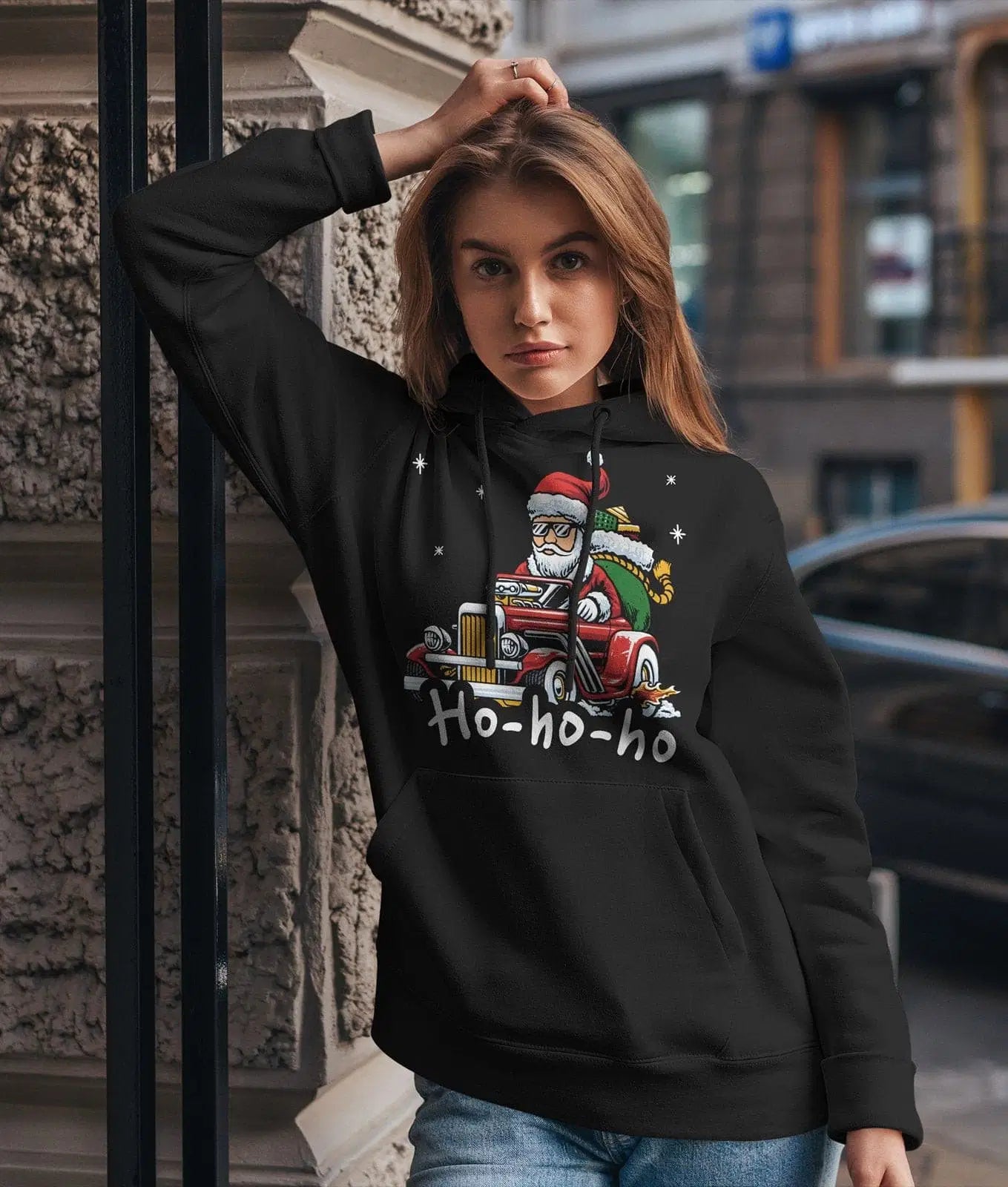 Hochwertiger Hoodie / Pullover mit Kapuze mit Motiv und Spruch: Ho-ho-ho 🎅🏻 (Weihnachtsmann)
