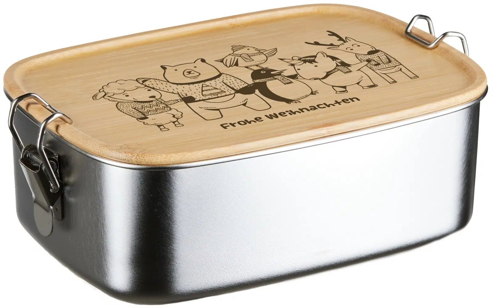 Brotdose aus Edelstahl mit Bambusdeckel & Verschluss