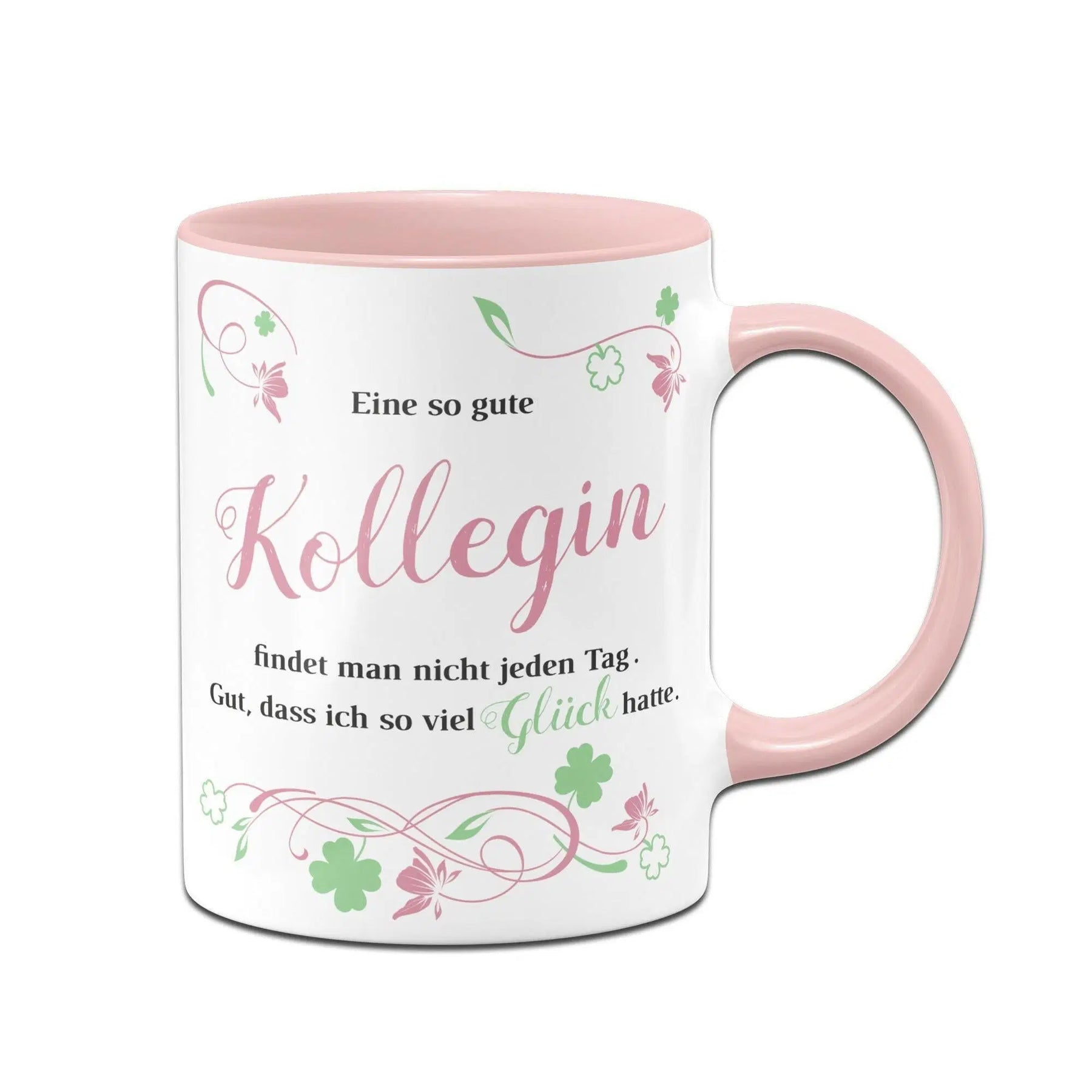 Tasse mit Spruch: Eine so gute Kollegin findet man nicht jeden Tag. Gut, dass ich so viel Glück hatte. 🌸
