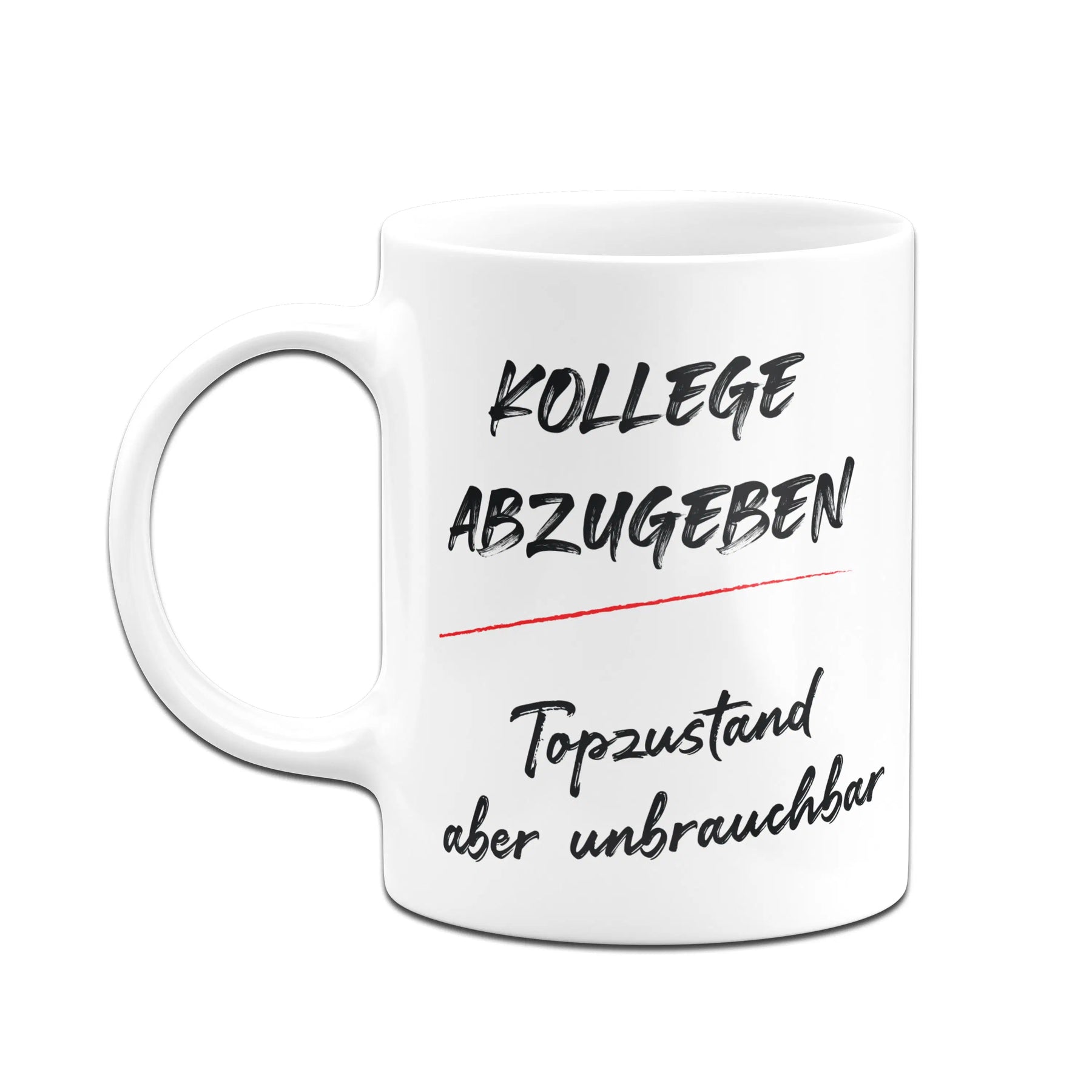 Tasse mit Spruch: Kollege abzugeben - Topzustand aber unbrauchbar