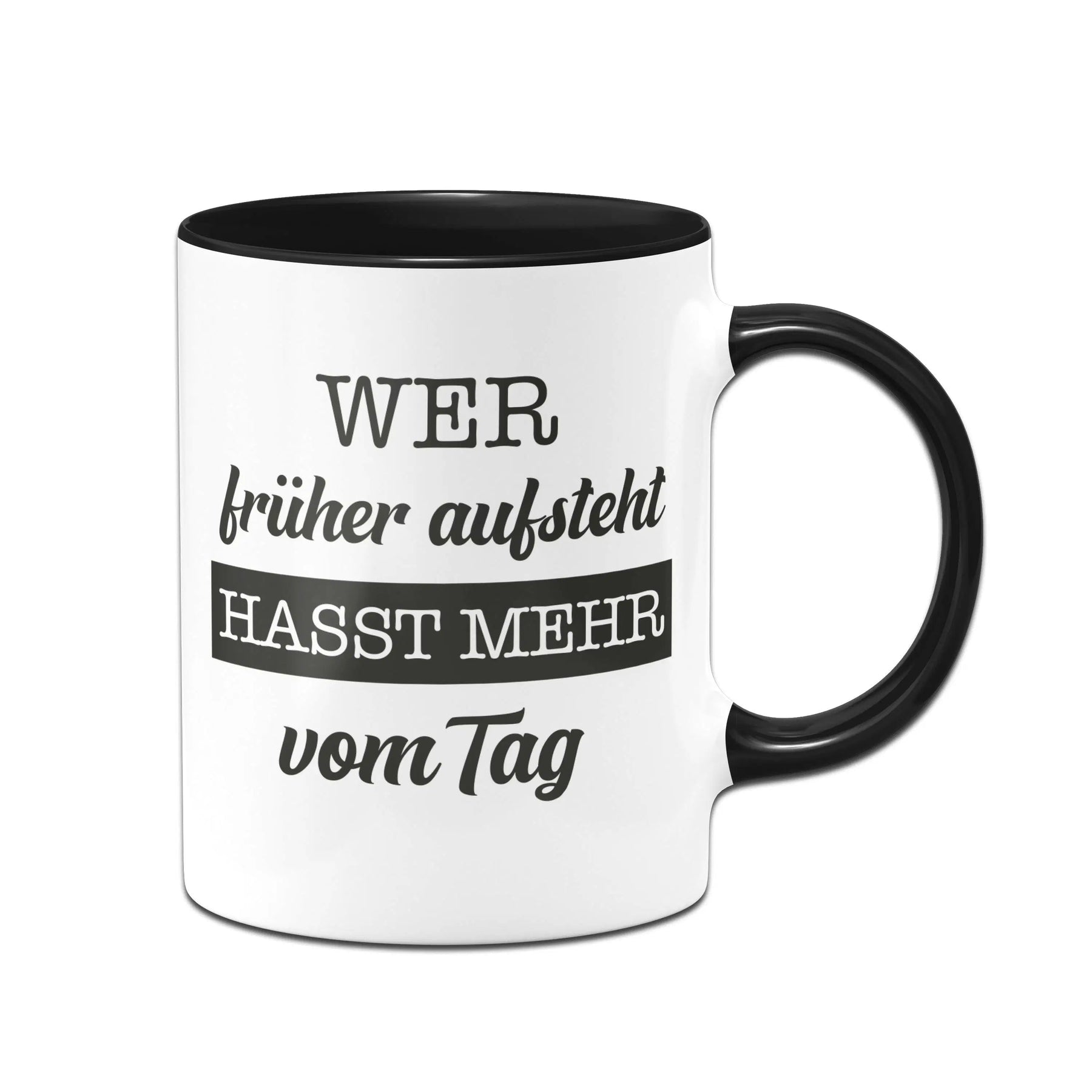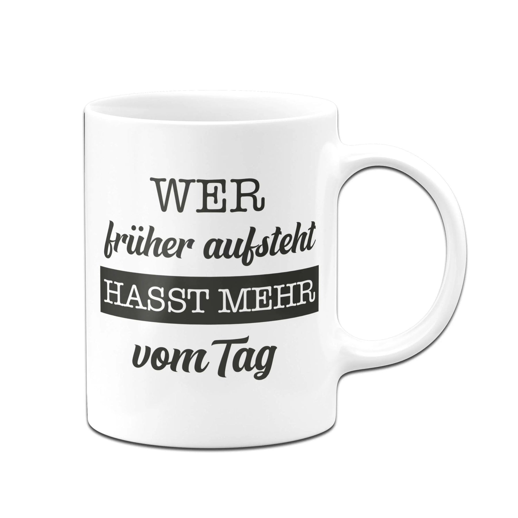 Tasse mit Spruch: Wer früher aufsteht, hasst mehr vom Tag.