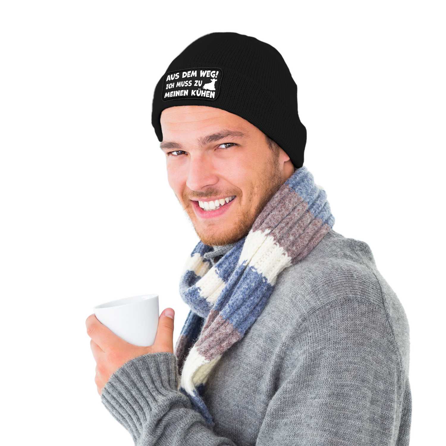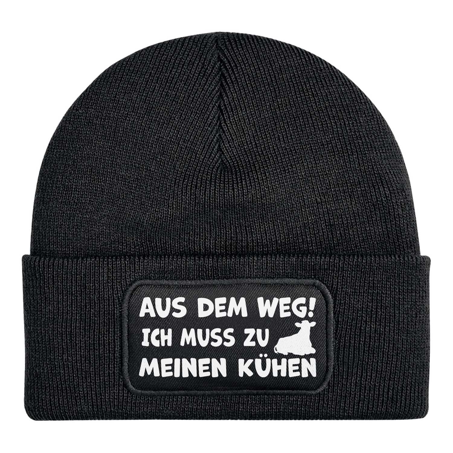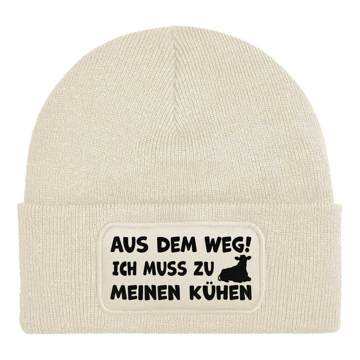 Beanie Mütze mit Spruch: Aus dem Weg! Ich muss zu meinen Kühen 🐄