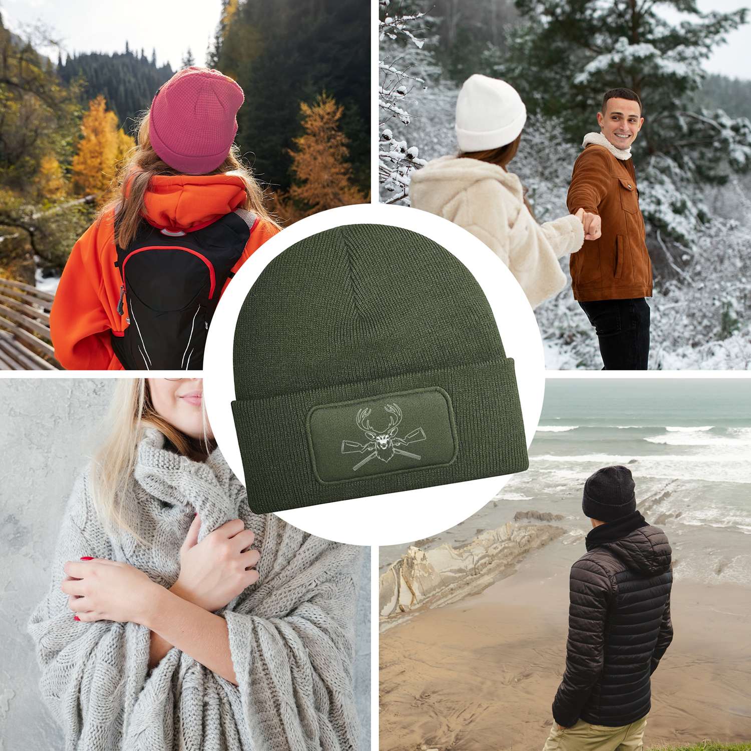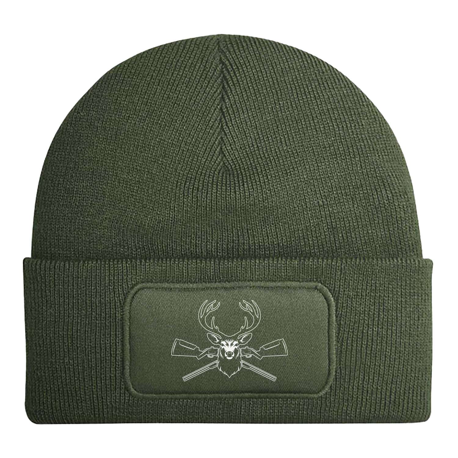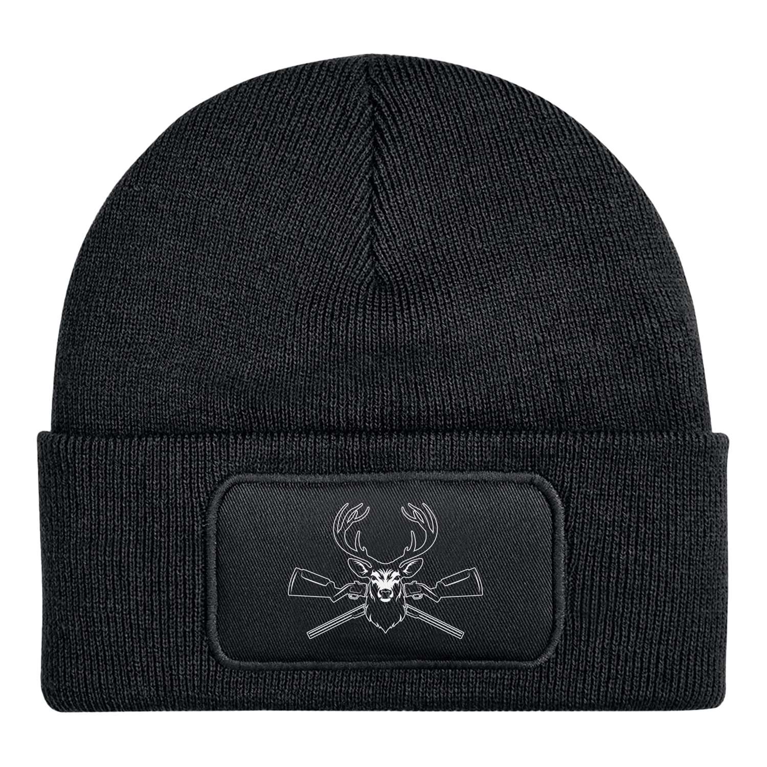 Beanie Mütze mit Hirschkopf und gekreuzten Jagdgewehren-Motiv 🦌