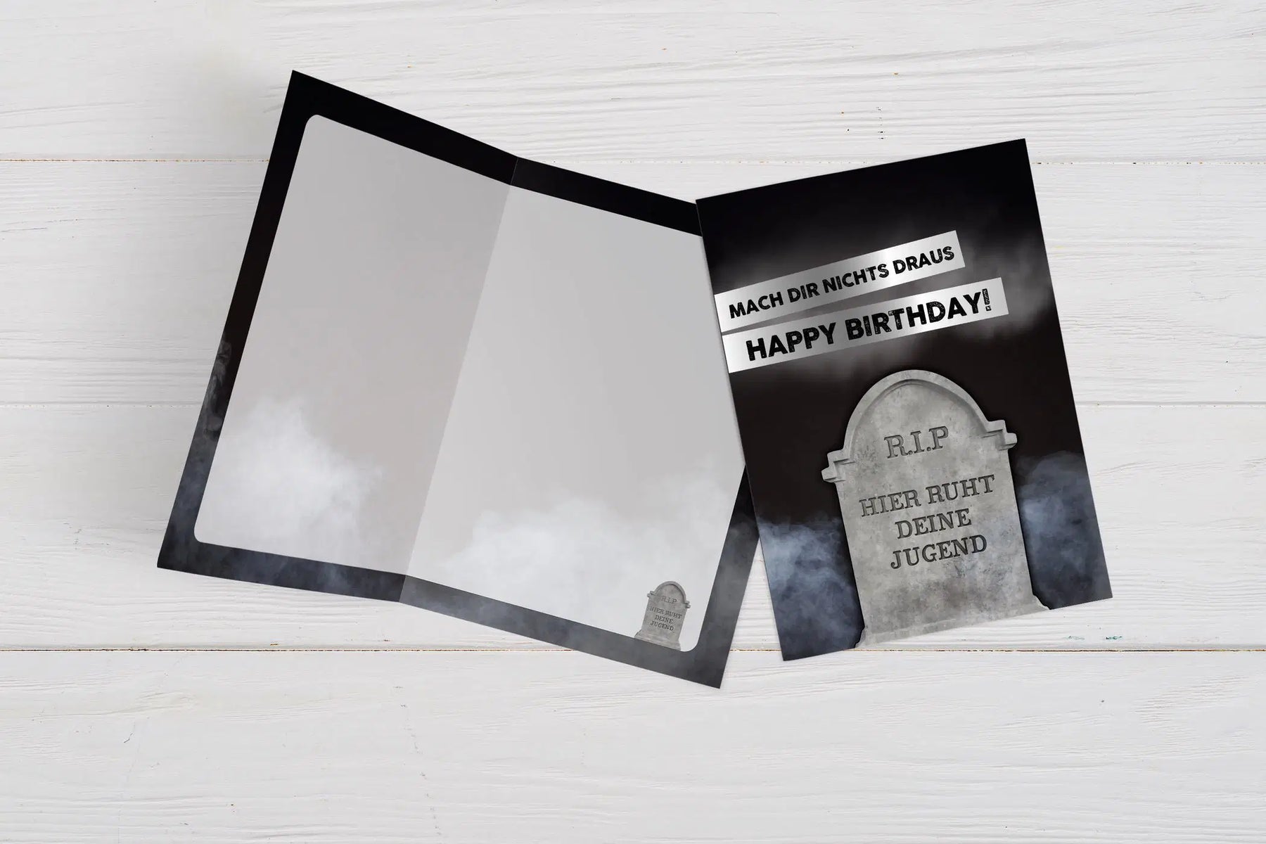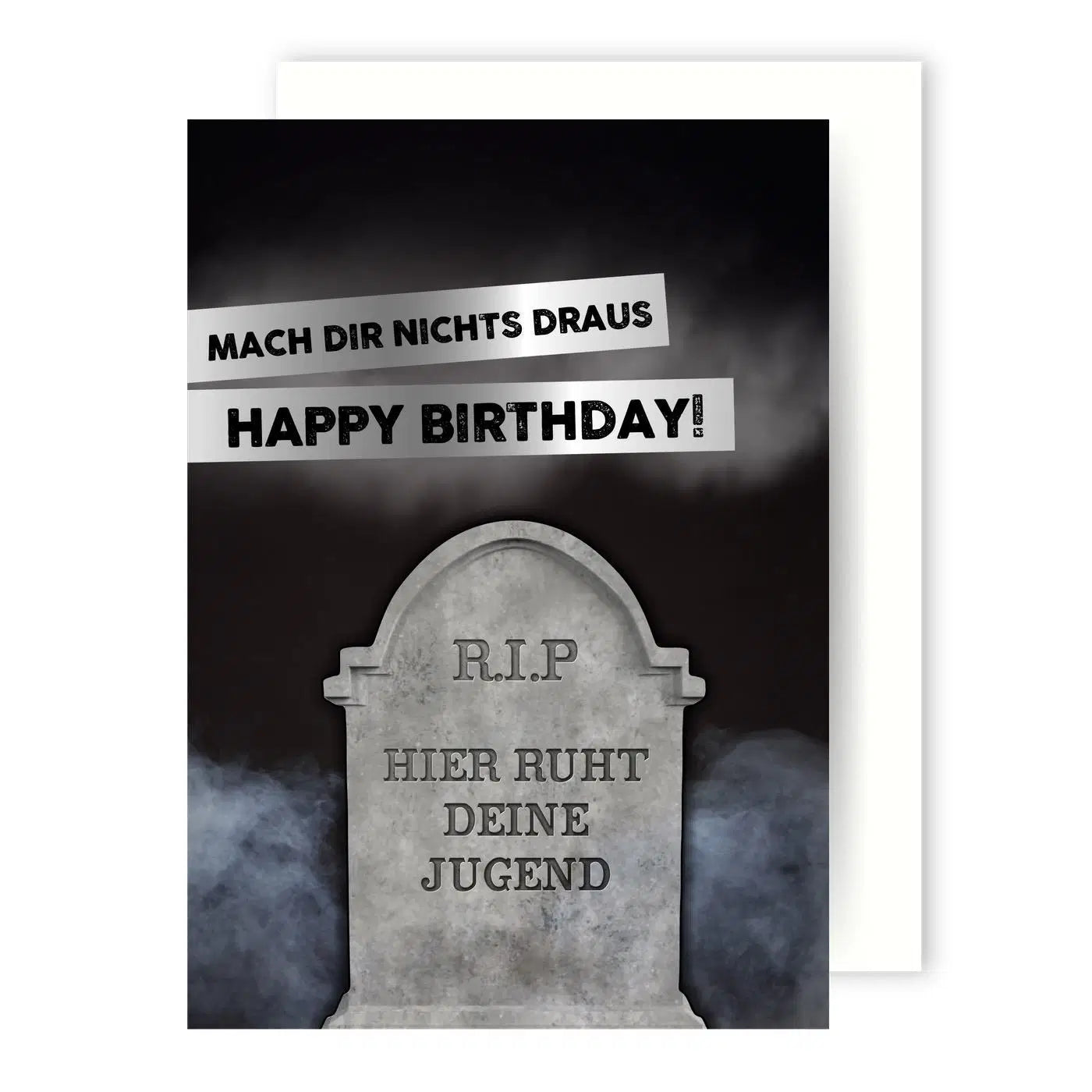 Grußkarte mit Spruch: Mach Dir nichts draus - Happy Birthday! - R.I.P. Hier ruht Deine Jugend