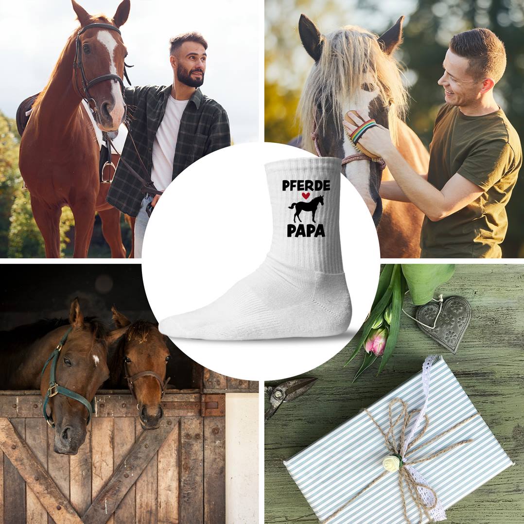 Diese coolen Tennissocken "Pferde Papa" 🐴❤️ bringen deine Pferdeliebe in den Alltag – mit einem detailreichen schwarzen Pferd-Motiv und kleinem roten Herz, langlebig per Sublimationsdruck aufgebracht. Bequem, atmungsaktiv und robust: perfekt für Stall, Sport und Freizeit.