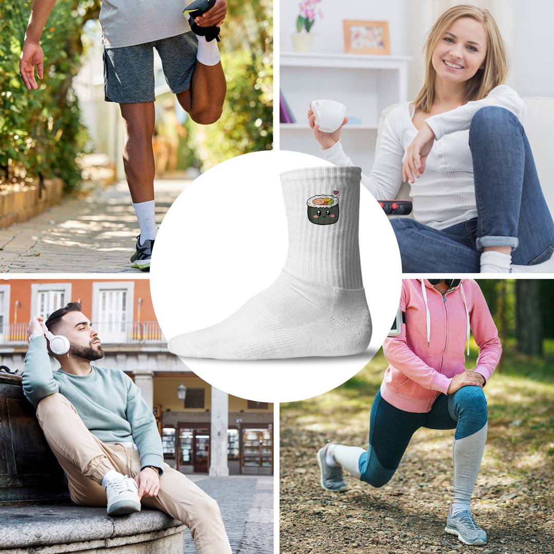 Diese lustigen Tennissocken bringen Geschmack in deinen Alltag – mit einem detailverliebten Sushi‑Motiv 🍣, sauber und langlebig per Sublimationsdruck aufgebracht. Bequem, atmungsaktiv und robust: perfekt für Sport und Freizeit.